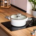 Каструля MGC діаметром 24 см забезпечує рівномірне нагрівання завдяки своєму алюмінієвому корпусу, а керамічне антипригарне покриття дає змогу готувати без пригорання. Кришка з жароміцного скла з паровідводом допомагає контролювати процес приготування, утримуючи тепло і зберігаючи всі аромати страв. Використання цієї каструлі допомагає зберегти максимальну кількість корисних речовин у їжі завдяки можливості готувати з мінімальною кількістю жиру. Основні характеристики Об'єм 3 л Діаметр 24 см Висота каструлі без кришки 11,5 см Висота каструлі з кришкою 16,5 см; Товщина дна 5 мм. Переваги каструлі. Підходить для газових, електричних та індукційних плит; Не вступає в реакцію з їжею; Каструля з антипригарним покриттям має товсте дно для ідеального поширення тепла. Запобіжні заходи під час використання Перед першим використанням вимийте каструлю в теплій воді з м'яким мийним засобом і губкою та витріть насухо. Після повного висихання протріть антипригарне покриття невеликою кількістю рослинної олії. Використовуйте силіконові або дерев'яні столові прилади для захисту поверхонь від подряпин. Категорично не рекомендується використовувати металеві ложки або лопатки. Не залишайте порожню каструлю на вогні. Також не використовуйте жорсткі губки та щітки, абразивні пасти та порошки або агресивні засоби для чищення.