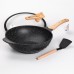 Сковорода ВОК діаметром 32 см - універсальний інструмент для приготування страв східної кухні, рагу, пасти та багато чого іншого. Сковорода виготовлена з литого алюмінію, має товсте дно, що забезпечує рівномірне прогрівання і зниження часу на приготування їжі. Крім того, швидке обсмажування дає змогу зберегти смак і корисні речовини овочів, м'яса та морепродуктів, а високі стінки та широке дно ідеально підходять для легкого перемішування та великих обсягів їжі. Сковорода має антипригарне покриття, що дає змогу готувати з мінімальною кількістю тваринних і рослинних жирів. Зручна бакелітова ручка не нагрівається і знижує до мінімуму ризик отримання опіків. Основні характеристики Діаметр 32 см Об'єм 5,8 л Висота 9 см Товщина дна 5 мм Із силіконовою лопаткою. Інструкція з використання Перед першим використанням вимийте сковороду в теплій воді з м'яким мийним засобом і губкою та витріть насухо. Після повного висихання протріть антипригарне покриття невеликою кількістю рослинної олії. Використовуйте силіконові або дерев'яні столові прилади, щоб захистити поверхню від подряпин. Категорично не рекомендується використовувати металеві ложки або лопатки. Щоб уникнути пошкоджень, мийте сковороду після повного охолодження. Не використовуйте жорсткі губки, щітки, абразивні пасти, чистячі порошки та агресивні речовини. Ця сковорода підходить для використання на газових, індукційних та електричних плитах. Високофункціональний і стильний дизайн робить її прекрасним доповненням до будь-якої кухні.
