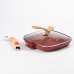 Алюмінієва сковорода гриль з антипригарним покриттям стане незамінним помічником на вашій кухні. Кришка з жароміцного скла забезпечує рівномірне приготування їжі без втрати тепла. У кришці є отвори для пари, які дають змогу регулювати кількість вологи в сковороді для досягнення ідеальних результатів приготування. Сковорода з керамічним покриттям рівномірно передає тепло і готує їжу швидко та рівномірно без ризику пригорання. Зручні ручки, що не нагріваються, захистять ваші руки від опіків. Унікальна конструкція дна забезпечує відмінну теплопровідність і рівномірний розподіл температури по всій поверхні. Основні характеристики сковороди гриль Розмір 24 x 24 см Об'єм 1,5 літра Висота 3,5 см. Товщина дна 5 мм. Переваги сковороди гриль MGC Підходить для газових, електричних та індукційних плит; Безпечне антипригарне покриття, що не містить шкідливих сполук; Керамічне покриття запобігає прилипанню їжі та забезпечує рівномірний розподіл тепла; Ергономічна ручка, яка не нагрівається під час приготування їжі. Запобіжні заходи зі сковородою Перед першим використанням вимийте сковороду в теплій воді з м'яким мийним засобом і губкою та витріть насухо. Після повного висихання протріть антипригарне покриття невеликою кількістю рослинної олії. Використовуйте силіконові або дерев'яні столові прилади, щоб захистити поверхню від подряпин. Категорично не рекомендується використовувати металеві ложки або лопатки. Щоб уникнути пошкоджень, мийте сковороди тільки після повного охолодження. Не використовуйте жорсткі губки, щітки, абразивні пасти, чистячі порошки та агресивні речовини. Ця сковорода поєднує в собі високу функціональність і стильний дизайн.