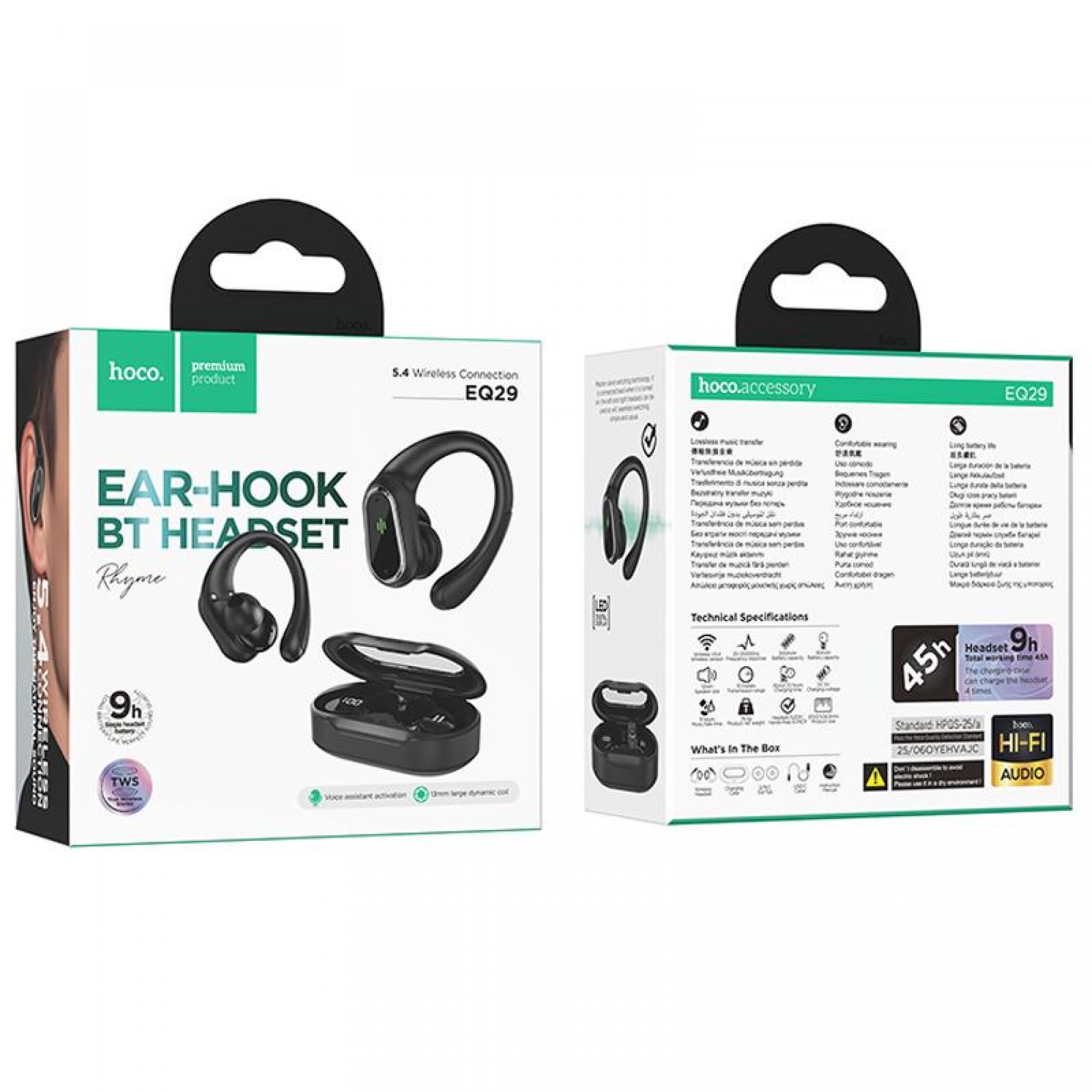Навушники Hoco EQ29 Rhyme оснащені сучасним Bluetooth 5.4 та чипом JL AC6976D4, що забезпечує стабільне з'єднання та високу якість звуку. Вбудовані акумулятори ємністю 50 мА·год у навушниках та 500 мА·год у кейсі дозволяють насолоджуватися музикою до 9 годин на одному заряді та до 45 годин з використанням кейсу. Це робить їх ідеальними для тривалих поїздок та активного використання.