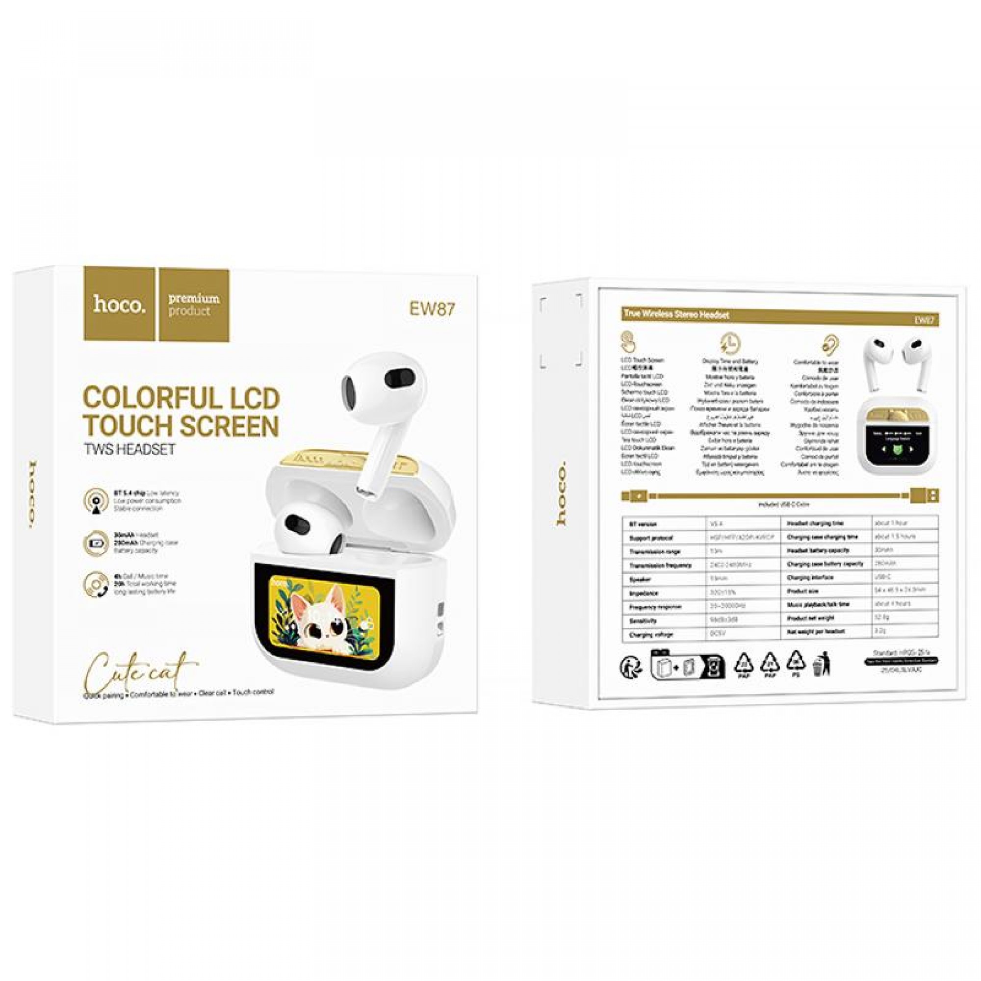 Навушники Hoco EW87 Gata оснащені сучасним Bluetooth 5.4 та чипом JL AC6983D4, що забезпечує стабільне з'єднання та високу якість звуку. Ємність батареї становить 280mAh для зарядного чохла та 30mAh для гарнітури, що дозволяє насолоджуватися музикою до 4 годин без підзарядки. Матеріали ABS та цинковий сплав забезпечують довговічність та стильний вигляд пристрою.