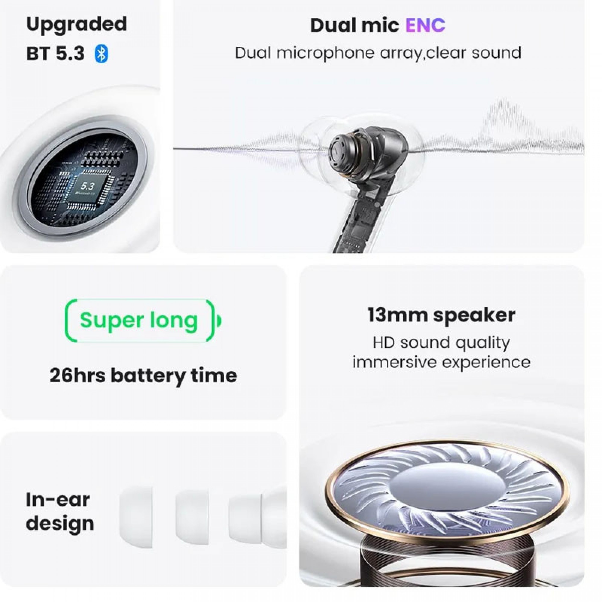 Вони легкі та компактні, важать близько 28,7 г та оснащені акумулятором ємністю 400 мАг, що дозволяє збільшити загальний час роботи навушників до 26 години.
