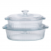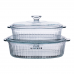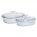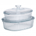 Набір скляних форм для запікання з боросилікатного скла — це універсальне та естетичне рішення для приготування різноманітних страв у духовці. Характеристики скляних форм для запікання тип виробу: жароміцні форми з кришками; матеріал: боросилікатне скло; об'єм: 2.8 л і 1.8 л; розмір першої форми: 26×19×13.5 см (без кришки 8 см); розмір другої форми: 24×18×11.5 см (без кришки 7 см); форма: овальна, з рельєфними стінками та ручками; підходить для: духовки, мікрохвильової печі, холодильника, посудомийної машини. Переваги набору Жароміцне скло: витримує високі температури та різкі перепади. Два об'єми: зручно використовувати для різних за розміром страв. Кришки в комплекті: зберігають тепло та аромат під час запікання. Прозорість: дозволяє стежити за процесом приготування. Гігієнічність: скло не вбирає запахи і легко миється. Естетичність: форми підходять для сервірування прямо на столі. Довговічність: стійкі до подряпин та побутових пошкоджень. Набір скляних форм для запікання — відмінний вибір для запіканок, м'яса, овочів, риби та інших страв. Купити форми для запікання з боросилікатного скла об'ємом 1.8 л та 2.8 л можна вже сьогодні з доставкою по всій Україні. Надійна упаковка та гарантована якість кожної одиниці товару. Готуйте зручно, смачно та красиво разом із термостійкими формами преміум-класу.