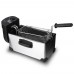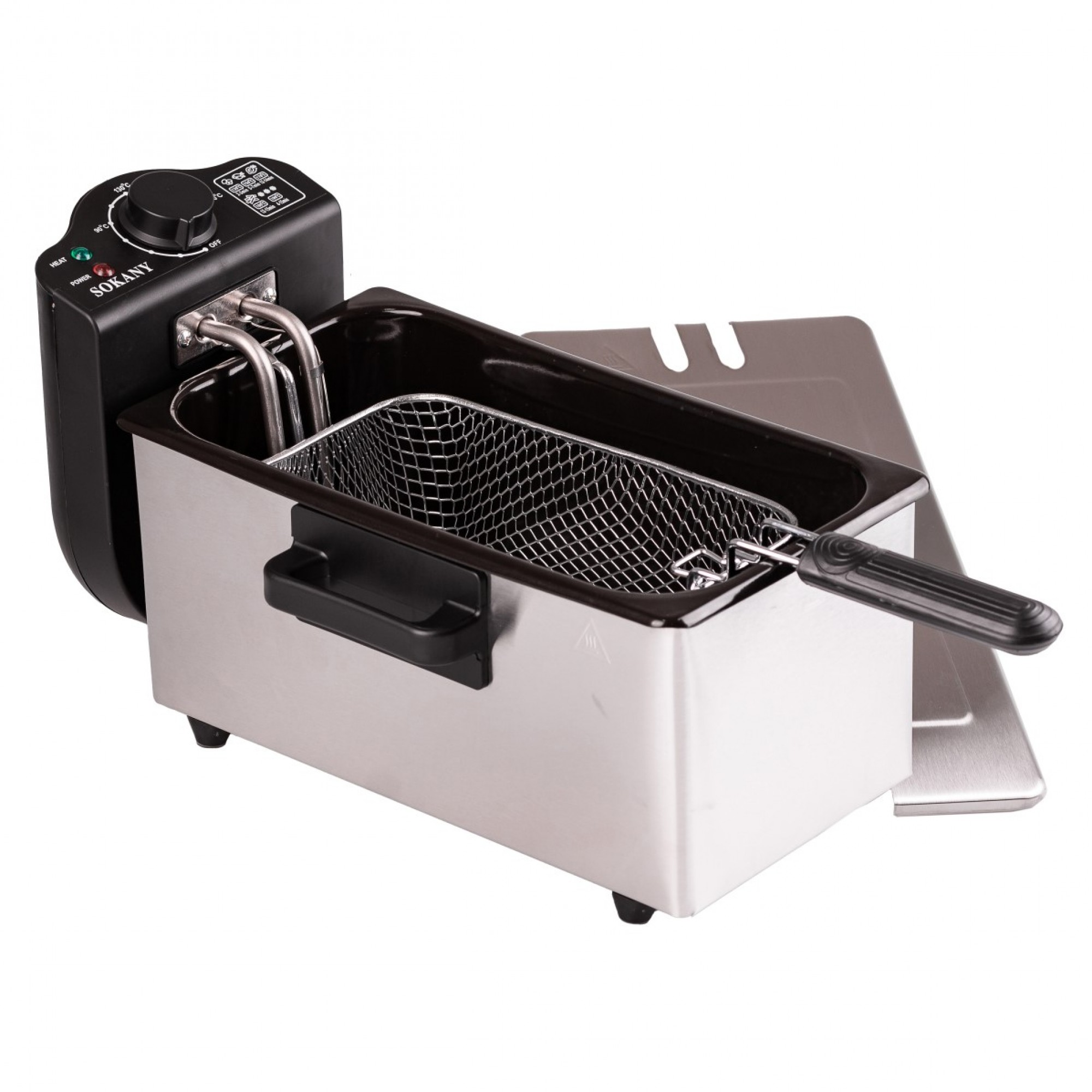 Фритюрниця електрична - це потужна та універсальна електрофритюрниця, яка ідеально підходить для приготування хрумкої та смачної їжі. Настільна фритюрниця ємністю 5 літрів дозволяє готувати великі порції фрі, чебуреків, пончиків, біляшів, курки за один раз. Фритюрниця обладнана потужним нагрівальним елементом, який швидко нагріває олію до потрібної температури. Основні характеристики фритюрниці об'єм 3.5 літрів; потужність 2000 Вт; робоча напруга 220-240 В; таймер 15 хвилин; частота 50/60 Гц. Переваги електрофритюрниці Sokany Знімні нагрівальні елементи спрощують процес очищення та догляду за пристроєм. Функція регулятора температури дозволяє настроїти температуру відповідно до конкретних вимог приготування. Ніжки, стійкі до ковзання, забезпечують стабільність пристрою під час експлуатації. Знімна ємність для олії з антипригарним покриттям спрощує процес очищення та підтримує гігієнічність використання. Подвійні фільтри фритюрниці контролюють запахи та пари олії, забезпечуючи комфортніші умови приготування. Фритюрниця Sokany підійде для фаст-фуду, кафе або ресторану. Фритюрниця промислова із захистом від перегріву та автоматичним вимиканням зробить роботу безпечною та зручною. Купити професійну фритюрницю можна з доставкою по всій Україні.