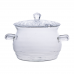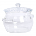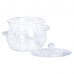 Каструля супниця виготовлена з термостійкого боросилікатного скла, що дозволяє використовувати її як для приготування, так і для сервірування гарячих страв. Прозора конструкція забезпечує візуальний контроль під час приготування та зручно підходить для подачі супів, бульйонів або рагу без необхідності додаткового посуду. У комплекті передбачено скляну кришку, яка щільно прилягає та допомагає зберігати температуру страви. Завдяки гладкій поверхні скло легко очищується і не вбирає запахи. Матеріал витримує вплив високих температур, тому супницю можна використовувати в мікрохвильовій печі або духовці, а також зберігати страви в холодильнику. Основні характеристики посуду супниці матеріал: боросилікатне скло; об'єм: 2 літра; висота кришки: 16 см; висота без кришки: 11.5 см; діаметр: 15,5 см. Особливості використання скляної каструлі Для уникнення появи тріщин і сколів слід рівномірно нагрівати каструлю при використанні. Для цього потрібно розмістити посуд на варильній поверхні та тільки після цього вмикати обладнання. Не можна залишати скляну каструлю порожньою на увімкненій варильній поверхні. При виборі конфорки слід орієнтуватися на діаметр дна каструлі, а при використанні на відкритому вогні обов'язково користуватися розсікачем полум'я. При нерівномірному розподілі тепла скло може луснути. Категорично не рекомендується ставити гарячу каструлю в холодильник, щоб запобігти пошкодженню. Після завершення готування знімати посуд з плити/виймати з духовки необхідно лише сухим рушником. Ставити каструлю слід виключно на суху поверхню. Для миття вручну не рекомендується використовувати жорсткі мочалки, скребки та абразивні засоби. Подряпини та мікротріщини знижують міцність матеріалу, що може призвести до втрати цілісності каструлі. Для очищення від шматочків їжі, що пригоріли, слід замочити каструлю у воді та почекати поки забруднення відійдуть. Для запобігання появі неприємних запахів і цвілі перед приміщенням на зберігання потрібно дочекатися повного висихання посуду. Категорично не рекомендується використовувати гарячу каструлю з холодними рідинами (і навпаки), використовувати під час приготування заморожені продукти. Боросилікатне скло "боїться" перепадів температур і може луснути. Скляна каструля не тільки практична, а й естетична. Вона ідеально підходить для приготування, зберігання та подачі страв прямо на стіл, що робить її універсальним та стильним кухонним аксесуаром.