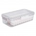 Пластиковий контейнер із комірками призначений для зручного заморожування фруктів, овочів, ягід, зеленої маси або кубиків льоду. Завдяки розділеним відсікам можна зберігати невеликі порції продуктів окремо, не змішуючи смаки та запахи. Прозора кришка щільно закривається за допомогою бічних фіксаторів і має вбудовані ручки, що полегшують переміщення контейнера навіть із вмістом. Основні характеристики контейнера для льоду з кришкою: Розмір контейнера: 30.5х16х7.5 см; Внутрішній розмір контейнера: 28.5х14 см; Розмір відсіку: 20.5х6.5х5 см; Об'єм контейнера: 1 л; Кількість відсіків для льоду: 2х36 шт; Розмір відсіків для льоду: 2х2х1.5 см; Матеріал: пластик. Контейнер виготовлено з міцного пластику, придатного для низькотемпературного зберігання, без ризику деформації. Компактна прямокутна форма дає змогу зручно розмістити його в морозильній камері. Такий формат підходить як для тривалого зберігання сезонних заготовок, так і для щоденного використання. Контейнер легко миється і повторно використовується. Його можна використовувати не тільки для заморозки, а й для порційного зберігання готових продуктів. Осередки допомагають економно розподіляти порції та краще організувати простір у морозилці.
