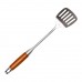 Кухонна лопатка - це зручний та надійний інструмент для перевертання та подачі страв у процесі приготування. Ідеально підходить для смаження м'яса, риби, оладок, овочів та інших продуктів. Робоча частина виготовлена з нержавіючої сталі – міцного, термостійкого матеріалу, який не деформується при нагріванні, не вбирає запахи та легко очищається. Дерев'яна ручка забезпечує комфортне захоплення, не нагрівається і надає виробу естетичного вигляду. Загальна довжина 39 см дозволяє безпечно використовувати лопатку при смаженні та запіканні, не ризикуючи обпектися. Основні характеристики металевої лопатки для сковороди: Розмір: 39×8 см; Довжина: 39 см; Матеріал робочої частини: нержавіюча сталь; Матеріал ручки: дерево. Завдяки міцним матеріалам та продуманій конструкції, лопатка підійде як для повсякденної домашньої кухні, так і для професійного використання. Це практичне та довговічне рішення для кожного, хто цінує зручність та якість на кухні.