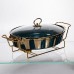 Настільна мармітниця овальна на металевій підставці стане ідеальним вибором для будь-якого банкету або святкового заходу. Металева підставка забезпечує надійну підтримку марміту та зручність під час подавання страв. Марміт використовується для підтримки температури страв, зберігаючи їхній аромат. Основні характеристики круглого марміту: Об'єм: 2 л; Розмір: 32×22×7 см; Матеріал: порцеляна; Матеріал кришки: скло; Матеріал підставки: метал. Порцеляновий марміт є не тільки практичним, але й естетично привабливим вибором для будь-якого столу, забезпечуючи зручність і стиль під час сервірування страв.