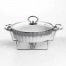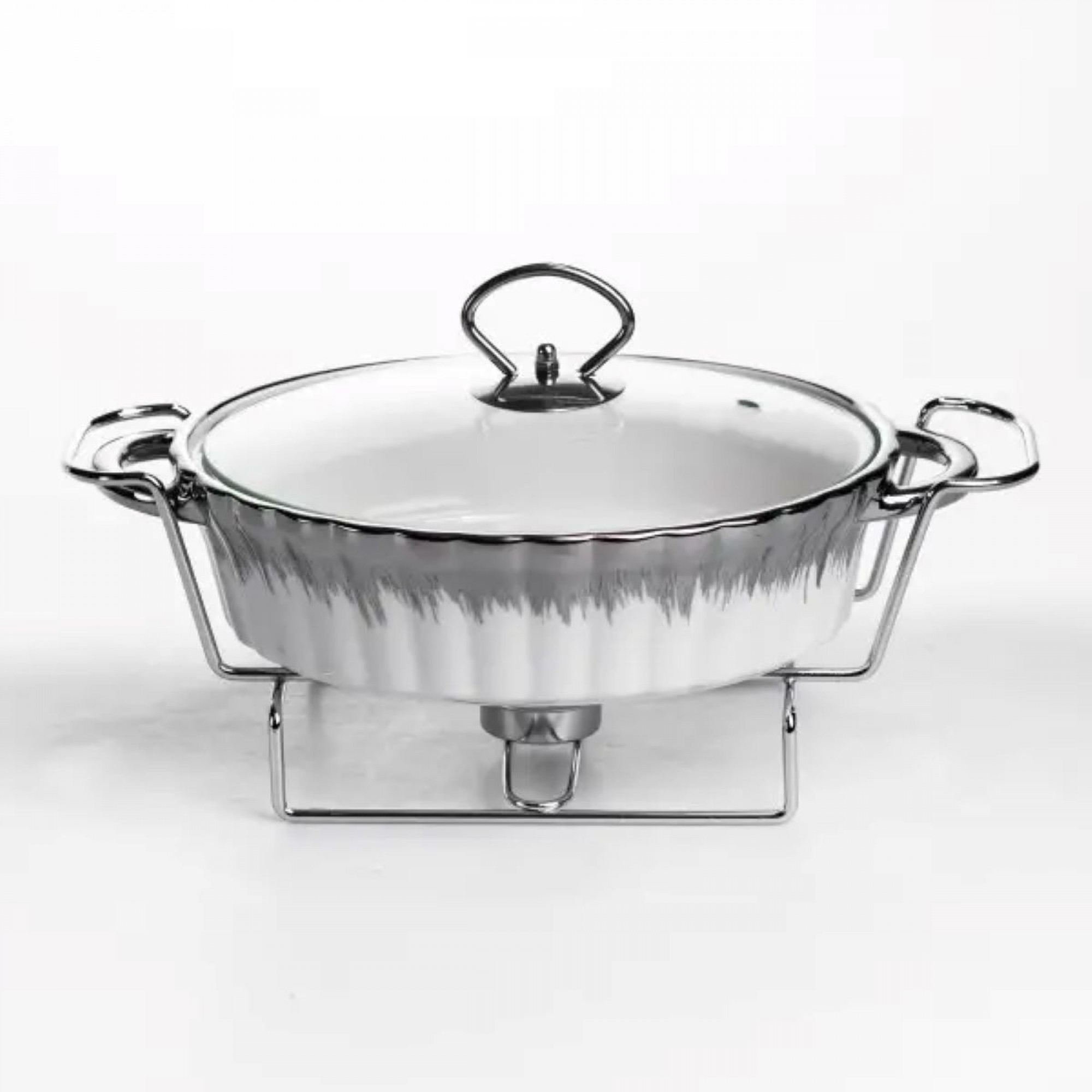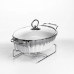 Мармітниця порцелянова овальної форми призначена для подачі гарячих страв із підтриманням температури. Завдяки металевій підставці з підігрівом її можна використовувати без підключення до електрики, що зручно для сервірування вдома або під час заходів. Конструкція забезпечує рівномірне збереження тепла страви протягом подачі. Ємність об’ємом 1 л підходить для гарнірів, м’ясних страв, соусів або закусок. Срібляста металева підставка забезпечує стійкість і передбачає місце для джерела підігріву. Овальна форма дозволяє зручно розміщувати мармітницю на столі та оптимально використовувати простір. Модель має збалансовані розміри та вагу, що робить її придатною для щоденного використання. Конструкція легко розбирається для очищення та зберігання. Підходить для домашнього використання або сервірування під час прийому гостей. Характеристики: Форма: овальна Матеріал ємності: порцеляна Матеріал підставки: метал Колір підставки: сріблястий Об’єм: 1 л Довжина: 31 см Ширина: 19 см Висота: 13 см Вага: 1.7 кг