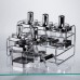 Набір скляних банок для сипучих продуктів - ідеальне рішення для організованого зберігання цукру, солі, чаю, кави та різноманітних розсипчастих інгредієнтів на вашій кухні. Ємності виконані з високоякісного скла, яке не поглинає запахи та забруднення, залишається прозорим без зміни кольору від продуктів і легко очищується під час миття. Герметична кришка оснащена силіконовим ущільнювачем, що забезпечує надійне закривання горловини банки, захищаючи вміст від потрапляння вологи та сторонніх ароматів. У комплекті передбачена зручна ложечка для точного дозування солі, спецій та інших дрібних інгредієнтів. Комплект містить стильну металеву підставку, яка економить простір у кухонній шафі або на робочій поверхні столу та дає можливість компактно організувати розташування банок згідно з вашими особистими потребами та звичками використання. Технічні характеристики набору банок для сипучих продуктів: • Матеріал виготовлення ємності: високоякісне скло; • Об'єм однієї банки: 350 мл; • Висота кожної баночки: 14 см; • Габаритні розміри набору: 25,5*18*17 см; • Загальна вага комплекту: 2,5 кг.