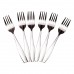 Набір десертних виделок складається з 6 штук, упакованих в зручну блістерну упаковку, що дозволяє легко зберігати і транспортувати виріб. Виделки виконані з високоякісного металу з сріблястим покриттям, що надає їм елегантний вигляд. Ручки виделок прикрашені золотистими елементами, які додають класичного шарму і витонченості. Основні характеристики: Кількість предметів в наборі: 6 шт.; Кількість персон: 6; Довжина: 14 см; Матеріал: нержавіюча сталь; Упаковка: пакет. Ідеальні за розміром для десертів або легких закусок, ці виделки зручні у використанні, а також добре підходять для святкових і повсякденних прийомів їжі. Класичний дизайн гармонує з різними стилями столових приладів та інтер'єрів. Для догляду рекомендується використовувати м'які миючі засоби, що не пошкоджують покриття. Після миття варто витирати виделки досуха, щоб зберегти їх блиск і продовжити термін служби виробу.