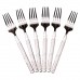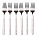 Набір десертних виделок складається з 6 штук, упакованих в зручну блістерну упаковку для захисту під час зберігання і транспортування. Вилки мають сріблясте покриття, що надає їм стильний вигляд і оригінальності кожному виробу. Основні характеристики: Кількість предметів в наборі: 6 шт.; Кількість персон: 6; Довжина: 15,5 см; Матеріал: нержавіюча сталь; Упаковка: пакет. Ці виделки ідеально підходять для десертів або легких закусок, забезпечуючи комфорт при використанні завдяки оптимальному розміру і формі. Класичний дизайн підходить для різних стилів сервірування і додає вишуканості будь-якому столу. Для догляду за виробом рекомендується використовувати м'які миючі засоби, що не пошкоджують покриття і гравіювання. Після миття варто витирати виделки досуха, щоб зберегти їх блиск і продовжити термін служби.