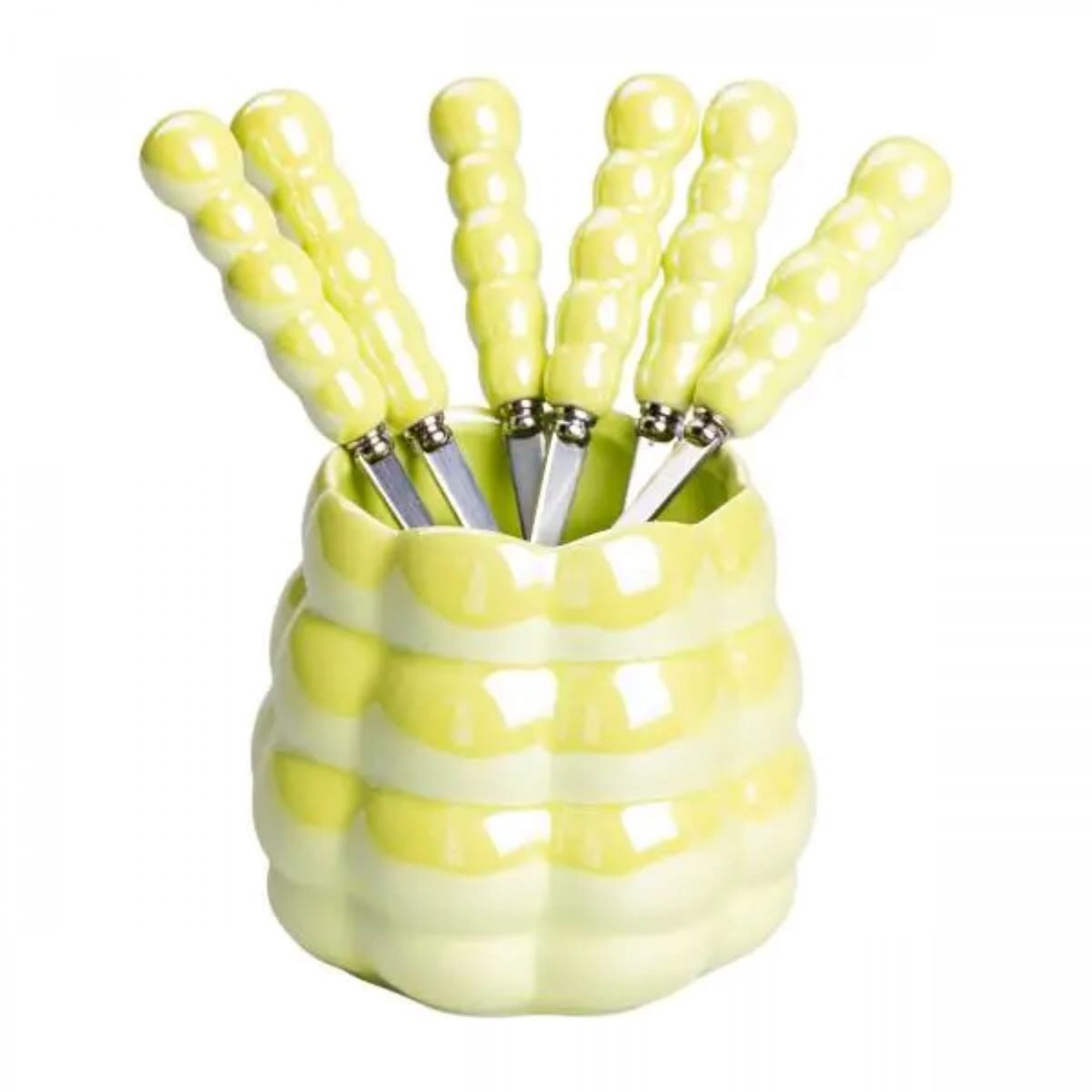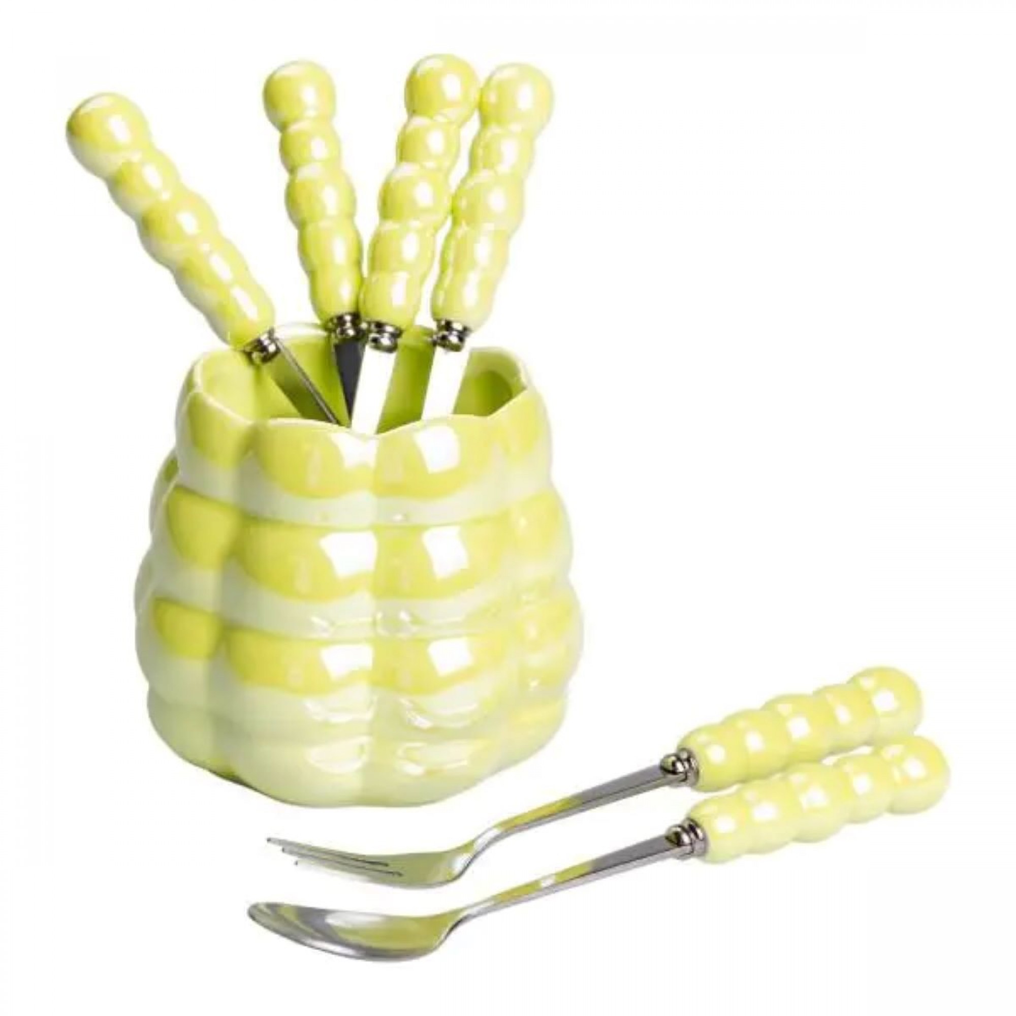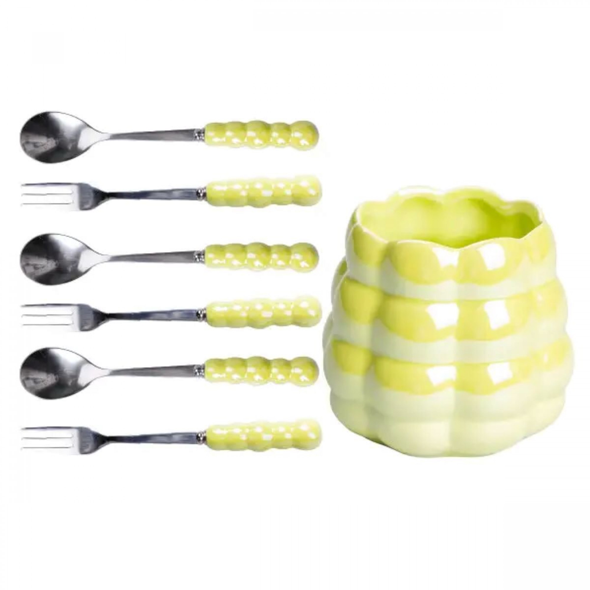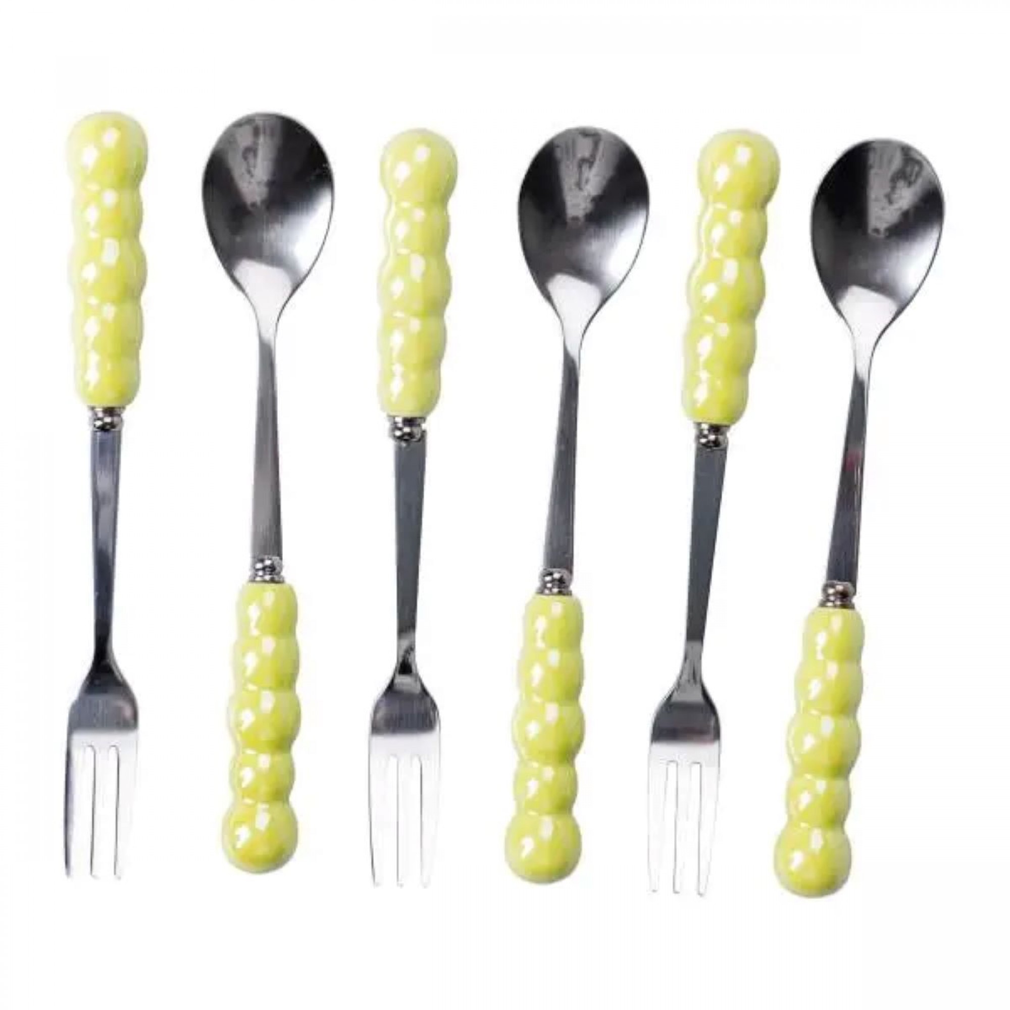 Набір десертних виделок і ложок на 3 персони з підставкою з кераміки 7 предметів Зелений HP-20-58