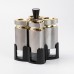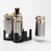 Комплект, виготовлений з пластику та скла, включає чотири банки для спецій та зручну підставку з ручками. Банки зі скла не вбирають запахи, що дозволяє зберігати спеції свіжими і смачними. Цей комплект для спецій стане ефектним доповненням до вашої кухні, адже підставка надійно утримує ємності, запобігаючи їх вислизанню, та надає кухні компактного й акуратного вигляду. Характеристики та переваги Розмір: 11,5 х 11,5 х 16 см Об’єм контейнерів: 120 мл Матеріал контейнерів: скло і пластик Матеріал підставки: пластик Простота у використанні з акцентом на увагу до деталей Заходи безпеки Для підтримки тривалого використання рекомендується мити банки вручну, уникаючи абразивних чистячих засобів. Не залишайте комплект на прямому сонці, щоб уникнути деформації пластику.