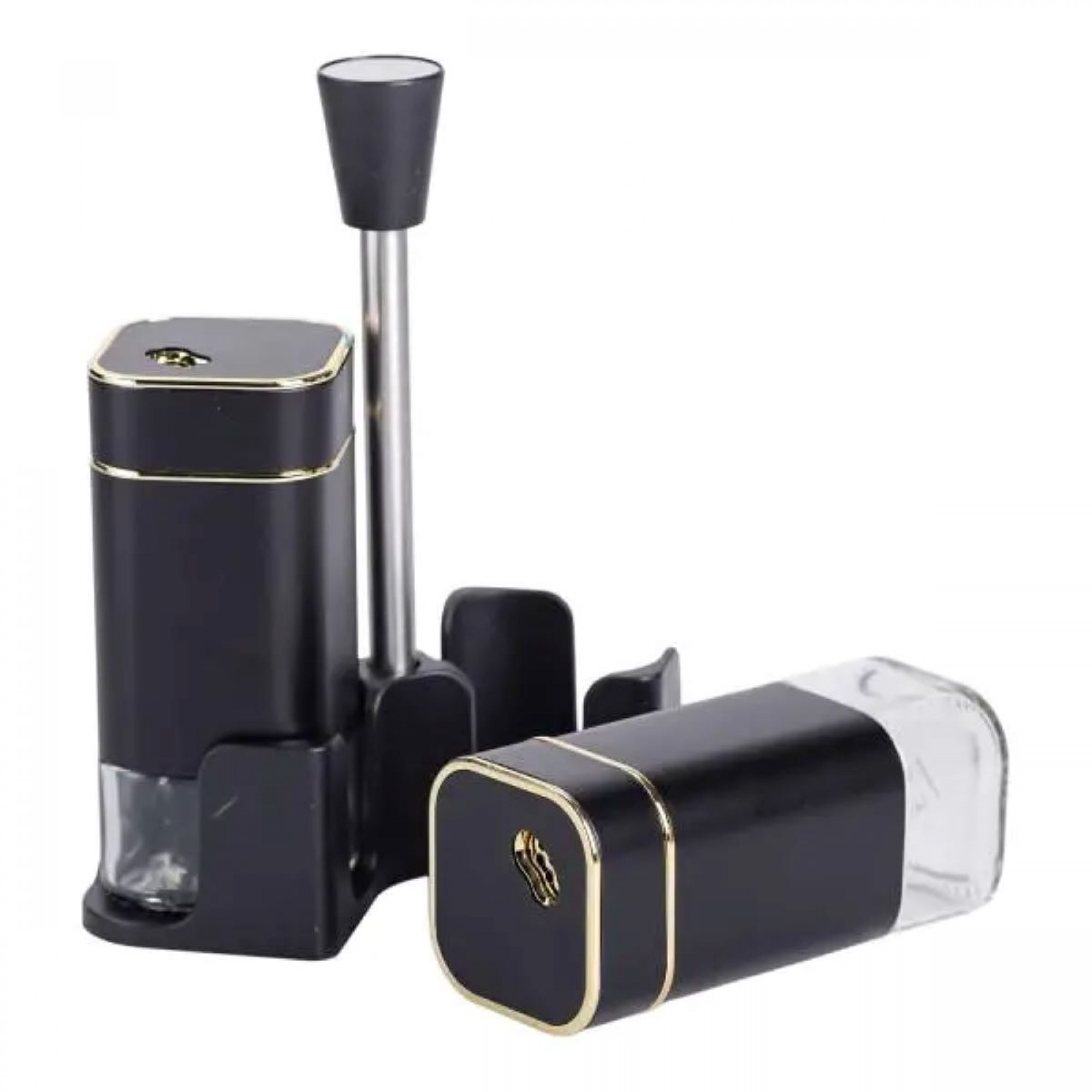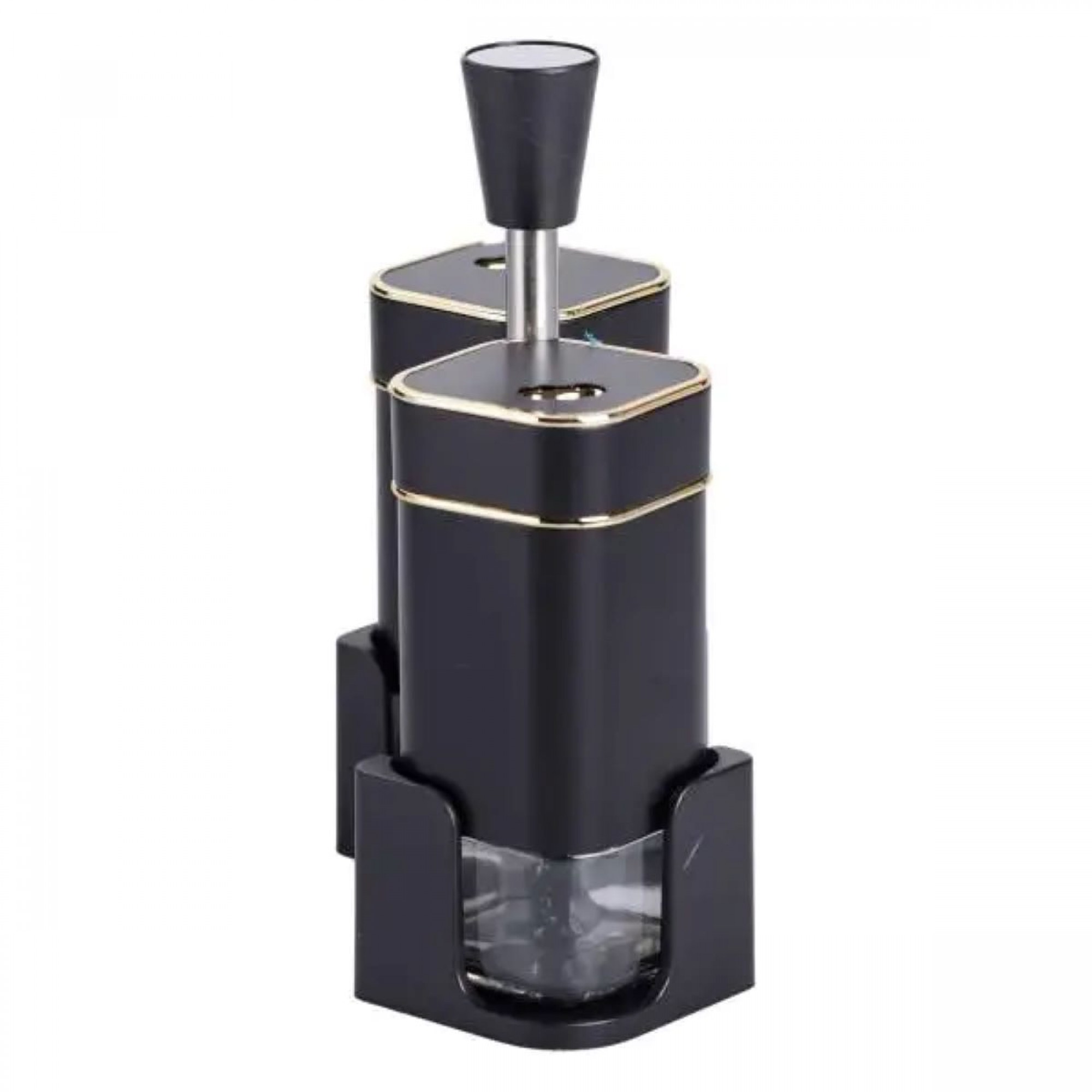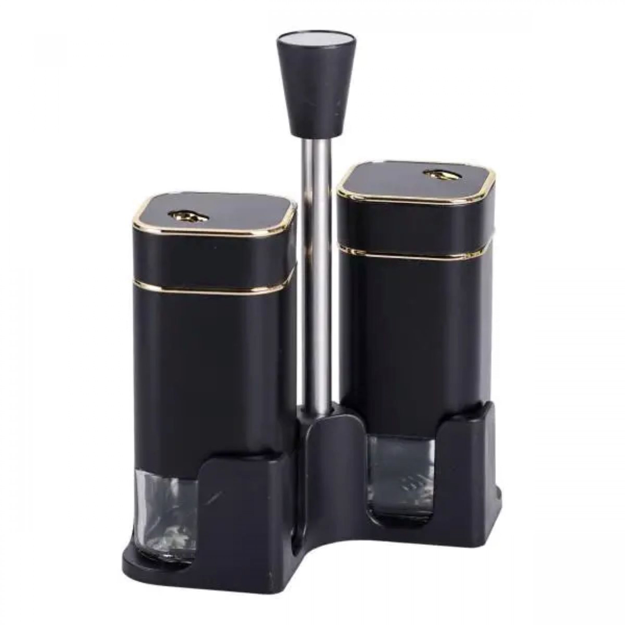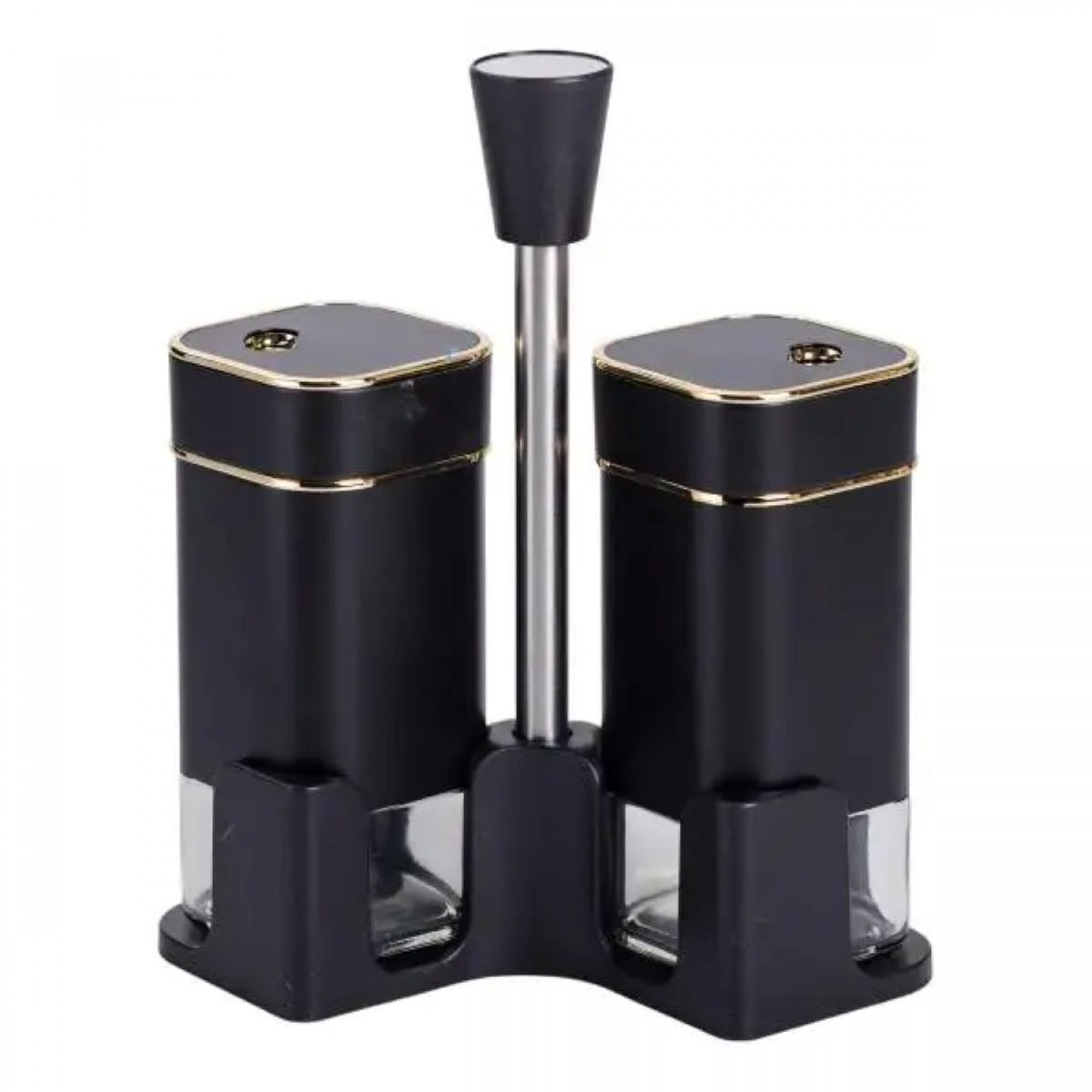 Набір ємностей для спецій на підставці з ручкою виготовлений із пластику та скла і складається з сільнички, перечниці та підставки з ручкою. Баночки виготовлені зі скла, яке не вбирає запахи та чудово зберігає свіжість і смакові якості спецій. Набір для спецій на підставці з 2 предметів не тільки додасть затишок вашій кухні, а й забезпечить зручність під час приготування страв. Основні характеристики набору баночок для приправ Розмір набору: 13х5.5х15.5 см; Висота ємності: 12 см; Об'єм ємностей 120 мл; Матеріал ємностей - скло, пластик; Матеріал підставки - метал, пластик. Підставка забезпечує надійну фіксацію контейнерів, запобігаючи їхньому ковзанню і створюючи компактний і акуратний вигляд на вашій кухні. Цей набір для спецій забезпечить зручність використання і підкреслить ваш смак до деталей.