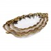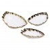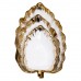 Набір фарфорових страв у формі листя - це витончене рішення для красивої подачі закусок, десертів і основних страв. Біла поверхня з хвилястим краєм і золотистим окантуванням надає сервіруванню витонченості і гармонійно вписується в будь-який інтер'єр кухні або святкового столу. Основні характеристики набору страв для сервірування столу: Матеріал: порцеляна; Кількість у наборі: 3 шт. Розмір: 30×18.5 см; 25×15 см; 20×11.5 см. Особливості порцелянових блюд: Три страви різного розміру, зручні для подачі фруктів, овочів, салатів чи солодощів. Форма листа робить сервірування оригінальним та декоративним. Компактне зберігання: страви складаються одна в одну і не займають багато місця. Порцеляна стійка до щоденного використання, легко миється і зберігає бездоганний вигляд. Підходить як для повсякденного використання, так і для святкових застіль. Такий набір страв з сервіровки стане не тільки практичним помічником на кухні, але і стильною прикрасою вашого столу. Він підкреслить смак приготованих частування і додасть родзинку в атмосферу будь-якого прийому їжі - від сімейної вечері до святкового бенкету.