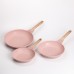 Набір сковорідок з товстим дном забезпечує рівномірну передачу тепла та ефективне приготування їжі. Покриття сковороди рівномірно передає тепло, що дає змогу швидко та рівномірно обсмажувати продукти без ризику пригорання. Зручні ручки, що не нагріваються, захистять ваші руки від опіків. Унікальна конструкція дна забезпечує відмінну теплопровідність і рівномірний розподіл температури по всій поверхні. Ключові особливості набору сковорідок MGC Мала сковорода Діаметр 20 см; Об'єм 1,2 л Середня сковорода Діаметр 24 см; Об'єм 2 літри. Велика сковорода Діаметр 28 см; Об'єм 3 літри. Переваги сковороди MGC Підходить для газових, електричних та індукційних плит; Безпечне антипригарне покриття, що не містить шкідливих сполук; Керамічне покриття запобігає прилипанню їжі та забезпечує рівномірну передачу тепла; Ергономічні ручки, які не нагріваються під час приготування їжі. Інструкція із застосування. Перед першим використанням вимийте сковороду в теплій воді з м'яким мийним засобом і губкою та витріть насухо. Після повного висихання протріть антипригарне покриття невеликою кількістю рослинної олії. Використовуйте силіконові або дерев'яні столові прилади, щоб захистити поверхню від подряпин. Категорично не рекомендується використовувати металеві ложки або лопатки. Щоб уникнути пошкоджень, мийте сковороди тільки після повного охолодження. Не використовуйте жорсткі губки, щітки, абразивні пасти, порошки для чищення та агресивні речовини. Набір сковорідок із 3 предметів поєднує в собі високу функціональність і стильний дизайн. Алюмінієві сковороди - це надійний помічник у приготуванні смачної та здорової їжі для всієї родини.