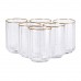 Набір склянок складається з шести низьких ребристих склянок, які вражають своїм стильним і вишуканим дизайном. Виготовлені з прозорого скла з цікавою ребристою текстурою, склянки надають глибину та естетичну привабливість. Завдяки своїй текстурі, вони не лише мають сучасний вигляд, а й зручно тримаються в руці. Золотий ободок на верхньому краї підкреслює елегантність склянок і додає нотку розкоші. Об'єм кожної склянки становить 450 мл, що робить їх ідеальними для різноманітних напоїв - від води та соку до коктейлів. З висотою 10,5 см ці склянки забезпечують зручність у використанні та легко поєднуються з іншими елементами сервірування. Ребриста поверхня надає їм візуального шарму та покращує зчеплення, що робить ці склянки зручними для щоденного використання. Характеристики: Кількість: 6 штук Об'єм: 450 мл Висота: 10.5 см Матеріал: скло Переваги: Стильний зовнішній вигляд із золотим обідком додає розкоші та витонченості. Об'єм 450 мл підходить для подачі різноманітних напоїв, включно з водою, соками та коктейлями. Висота 10,5 см і текстурована поверхня забезпечують комфортне тримання та використання. Ребриста поверхня не тільки привертає увагу, а й покращує зчеплення. Ідеальні для повсякденного використання та святкових заходів, легко поєднуються з іншими елементами сервірування. Догляд: Рекомендується мити вручну з м'якими мийними засобами, щоб зберегти блиск і цілісність золотого обідка. Уникайте використання абразивних губок і посудомийних машин, щоб запобігти пошкодженню декору. Зберігайте у вертикальному положенні, щоб уникнути подряпин і відколів на поверхні.