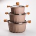 Набір великих каструль з мармуровим антипригарним покриттям - чудовий вибір для приготування різноманітних страв. Каструлі виготовлені з литого алюмінію, мають потовщене дно, яке забезпечує рівномірне нагрівання та оптимальний розподіл тепла. Головна перевага набору - антипригарне покриття, що дозволяє гасити овочі, пасерувати, готувати супи та каші без ризику пригорання чи прилипання продуктів, використовуючи мінімум жиру. Для додаткового комфорту каструлі комплектуються скляними кришками з отвором для виходу пари, що дозволяє контролювати процес приготування, зберігаючи температуру. Основні характеристики набору каструль Каструля об'ємом 5,3 літра Діаметр 24 см Висота каструлі без кришки 13,2 см Висота каструлі з кришкою 18,2 см Каструля об'ємом 8,2 л Діаметр 28 см; Висота каструлі без кришки 15,2 см Висота каструлі з кришкою 20,2 см. Каструля об'ємом 11,8 л Діаметр 32 см; Висота каструлі без кришки 16,8 см; Висота каструлі з кришкою 21,8 см; Цей набір каструль підходить для всіх типів плит - індукційних, газових та електричних, що робить його універсальним рішенням для будь-якої кухні. Алюмінієва каструля - надійний помічник для приготування смачної та здорової їжі для всієї родини.