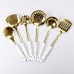 Набір кухонного приладдя з нержавіючої сталі з керамічними ручками - це стильний і функціональний комплект, який стане чудовим доповненням до будь-якої кухні. До набору входять 7 основних предметів, необхідних для приготування їжі, які зручно розташовані на металевій підставці. Високоякісна неіржавна сталь забезпечує довговічність, стійкість до корозії та збереження первозданного вигляду навіть при інтенсивному використанні. Основні характеристики: Кількість предметів у наборі: 7 шт; Матеріал приладів: нержавіюча сталь, кераміка. Розміри: лопатка: 35 см; лопатка з прорізом: 36 см; шумівка: 35 см; ополоник: 32.5 см; шумівка для спагеті: 31.5 см; ложка велика: 26.5 см. Особливістю набору є керамічні ручки, які не тільки додають естетичної привабливості, а й забезпечують комфортне використання. Завдяки гладкій і приємній на дотик поверхні, прилади зручно лежать у руці, не нагріваються і не ковзають під час роботи. Керамічне покриття також легко очищається, що робить процес приготування їжі ще більш приємним і зручним. Металева підставка дає змогу зберігати всі предмети в одному місці, забезпечуючи порядок і швидкий доступ до необхідного приладдя. Компактний дизайн підставки економить простір на кухні, а її міцна конструкція гарантує надійність і стійкість. Завдяки поєднанню практичності, якісних матеріалів і стильного дизайну, цей набір стане незамінним помічником у кулінарних експериментах і подарує комфорт під час приготування улюблених страв.