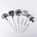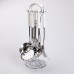 Набір кухонних приборів складається з семи предметів, виготовлених із неіржавкої сталі. Робочі частини виробів забезпечують стійкість до корозії та зносостійкість під час використання. Керамічні ручки виконані в класичному стилі та забезпечують зручний хват. Основні характеристики: Кількість предметів у наборі: 7 шт; Матеріал приладів: нержавіюча сталь, кераміка. Розміри: висота лопатки: 34 см; висота лопатки з прорізом: 35 см; висота шумівки: 34.5 см; висота ополоника: 31.5 см; висота шумівки для спагеті: 30.5 см; висота ложки: 26.5 см. До комплекту входять основні кухонні інструменти, необхідні для приготування та подавання страв. Форма і розмір кожного предмета адаптовані для ефективного використання, а гладка поверхня сприяє легкому догляду. Конструкція ручок передбачає міцне з'єднання з металевою частиною, що підвищує надійність приладів. Набір доповнено металевою підставкою, яка дає змогу зручно організувати зберігання предметів. Компактне розташування інструментів на підставці сприяє економії місця на кухні та забезпечує швидкий доступ до необхідного приладу під час приготування їжі.