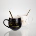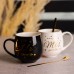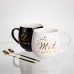 Набір парних порцелянових чашок Mr&Mis 2 (шт) по 350 (мл) чашки на подарунок з ложкою Чорний з білим FM-29