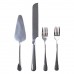 Набір столових приборів для подачі тортів сріблястий складається з чотирьох предметів: лопатки, ножа і двох виделок. Усі елементи виготовлені з нержавіючої сталі, що забезпечує їхню довговічність і стійкість до корозії. Гладка поверхня приладів сприяє легкому очищенню та запобігає утворенню плям. Основні характеристики: Кількість предметів: 4; Матеріал: нержавіюча: сталь. Довжина приладів: лопатка: 23 см; виделка: 17.5 см; ніж: 27 см. Лопатка має зручну форму із загостреним краєм, що полегшує подачу торта. Ніж призначений для точної нарізки десертів. Завдяки простому дизайну набір підходить як для домашнього використання, так і для святкових заходів. Прилади виконані в сріблястому кольорі без зайвих декоративних елементів. Це дає змогу поєднувати їх із різними стилями сервірування столу. Набір придатний для миття в посудомийній машині відповідно до рекомендацій виробника.