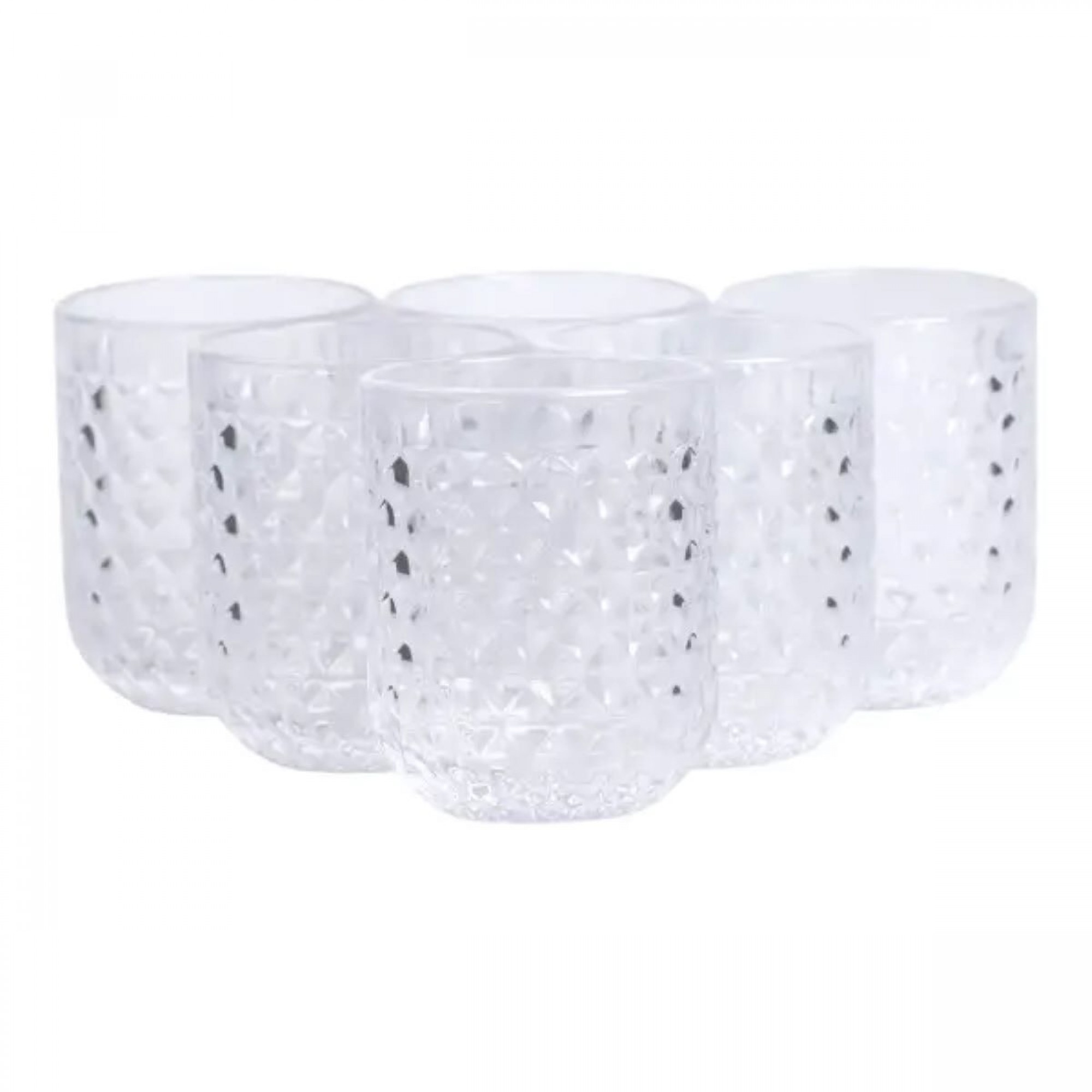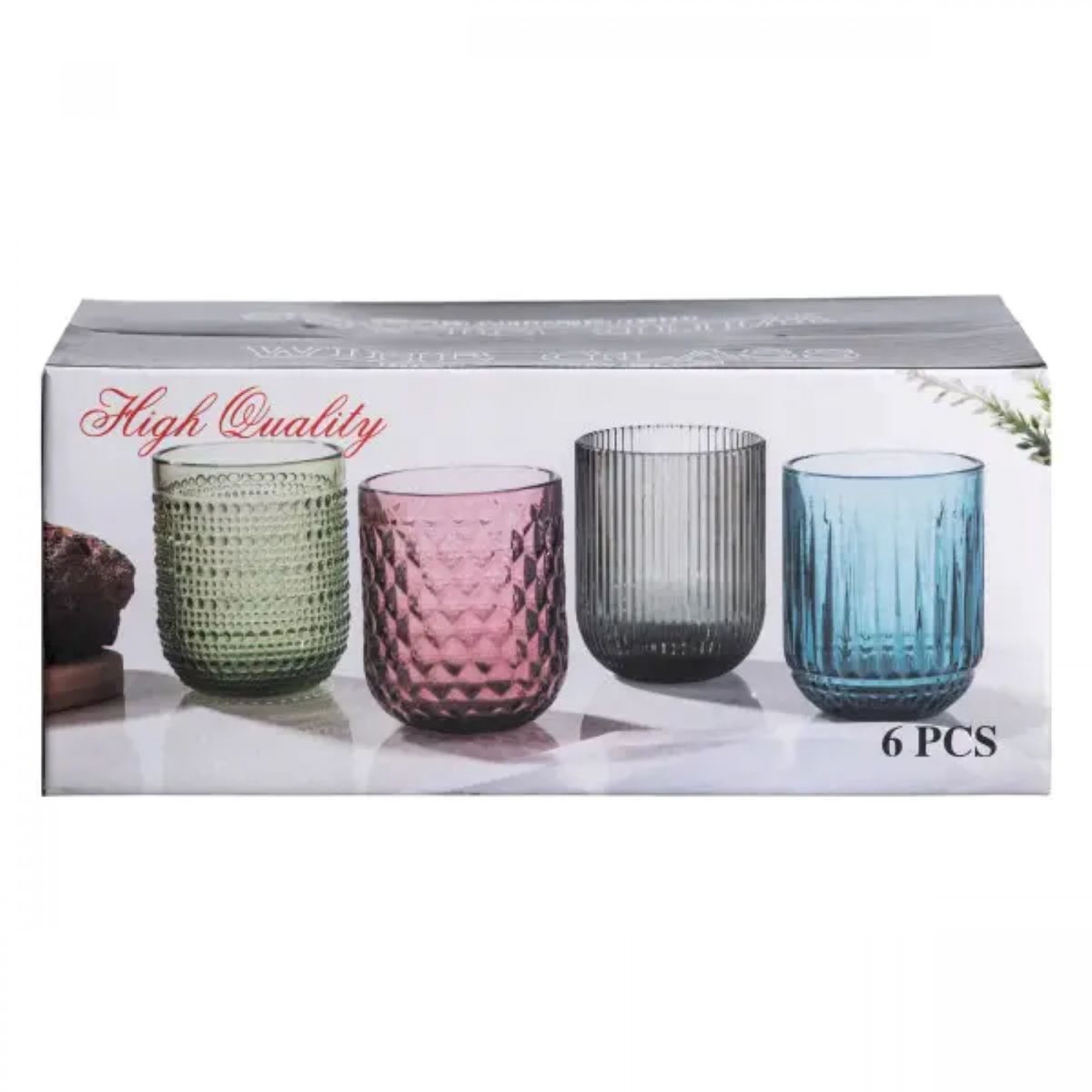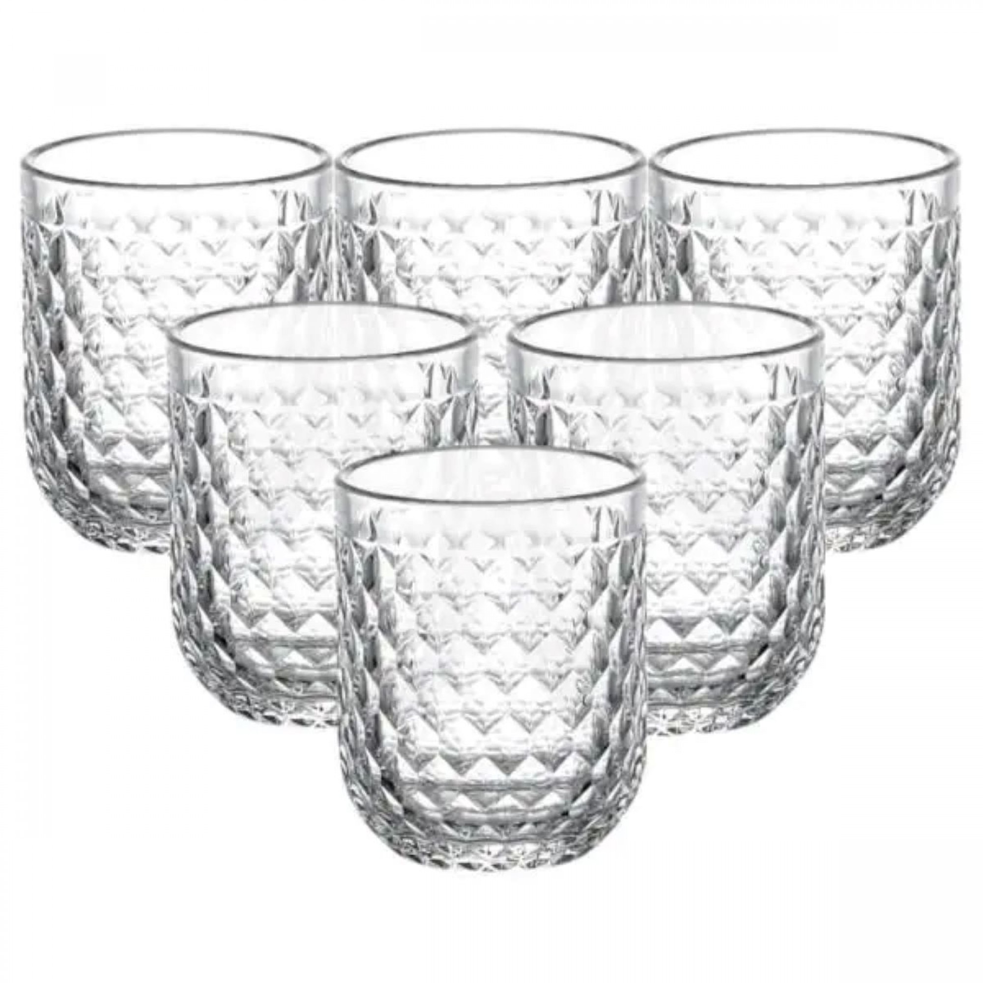 Склянки виготовлені з прозорого скла, яке вирізняється чистотою та блиском. Вироби мають фігурну форму з м'якими вигинами, що створює виразний візуальний ефект. Завдяки щільній структурі стінок склянки зручно лежать у руці та зберігають температуру напою трохи довше. Основні характеристики: Матеріал: скло; Об'єм: 250 мл; Висота: 9 см; Верхній діаметр: 7 см; Нижній діаметр: 4.5 см; Призначення: для води, соків, коктейлів та інших напоїв; Особливості: міцні, стійкі до пошкоджень, легко миються. Форма склянок підходить для подачі різних холодних напоїв - води, соків, лимонадів або коктейлів. Прозоре скло дає змогу оцінити колір і консистенцію напою, а гладка внутрішня поверхня забезпечує легке очищення. Завдяки фігурному профілю вироби мають приємне на дотик захоплення. Склянки практичні в повсякденному використанні та доречні для сервірування святкового столу. Їх можна мити вручну або в посудомийній машині. Посуд для тих, хто віддає перевагу поєднанню функціональності та лаконічного дизайну.