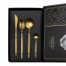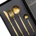 Набір столових приборів 24 предмети набір ложок виделок і ножів на 6 персон Золотистий HP-20-43