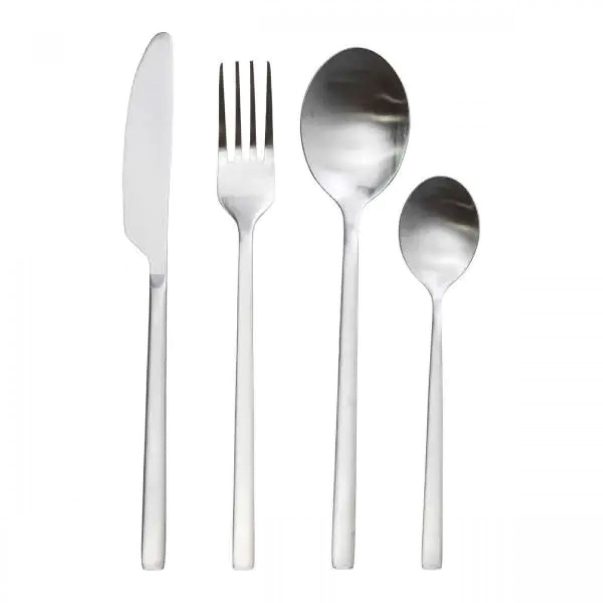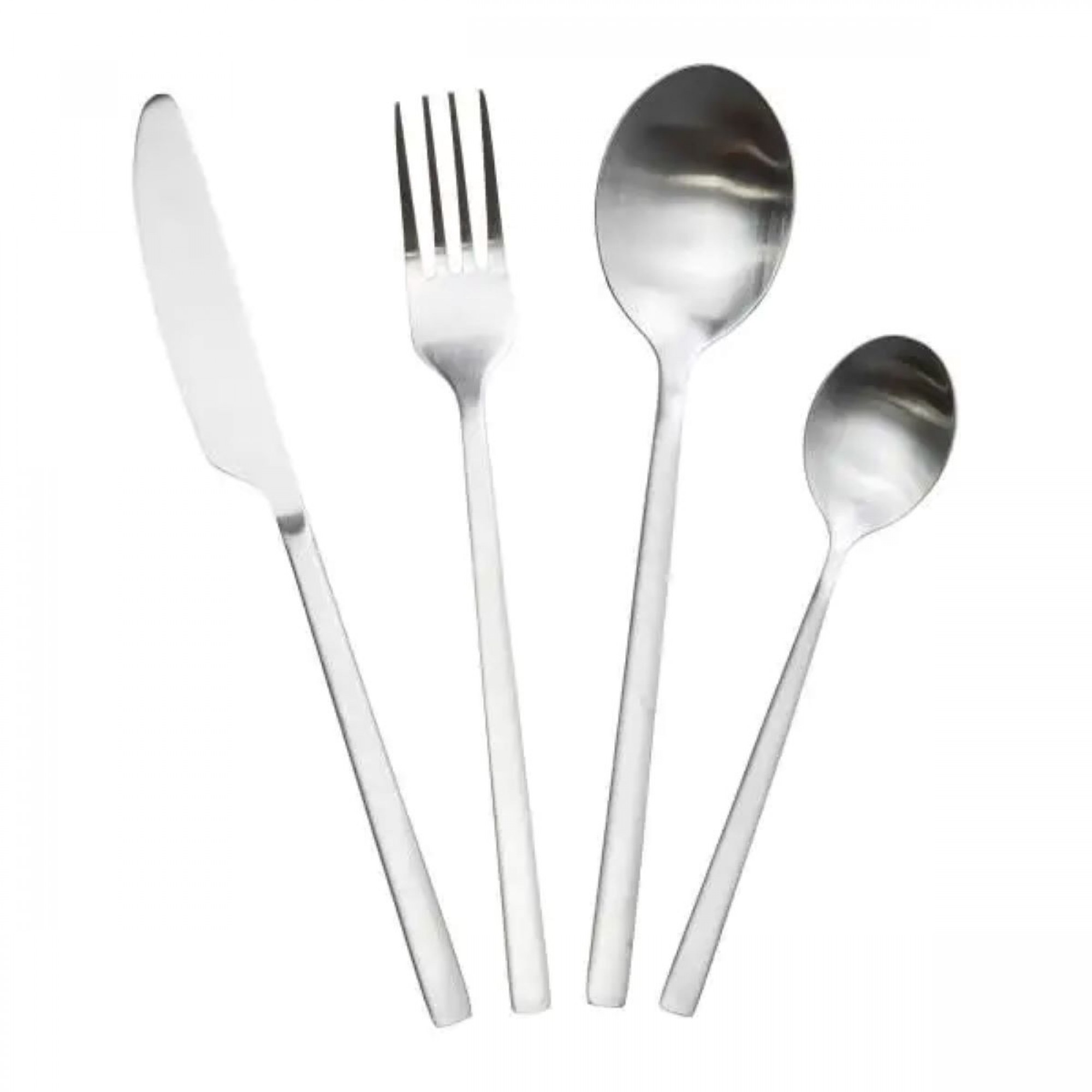 Набір столових приборів у вінтажному стилі включає 24 предмети: 6 столових ложок, 6 чайних ложок, 6 виделок і 6 столових ножів. Прилади мають лаконічний дизайн без візерунків і декоративних елементів, що підкреслює їхню стриману елегантність. Завдяки продуманій формі вони зручно лежать у руці та підходять для повсякденного використання або сервірування святкового столу. Основні характеристики: Кількість предметів у наборі: 24 шт; Кількість персон: 6; Матеріал: нержавіюча сталь; Упаковка: коробка; Розміри приладів: довжина столового ножа: 21.5 см; довжина столової ложки: 20 см; довжина столової виделки: 20 см; довжина чайної ложки: 15.5 см. Комплектація набору: столовий ніж: 6 шт; столова ложка: 6 шт; столова виделка: 6 шт; чайна ложка: 6 шт. Виготовлені з нержавіючої сталі, столові прибори вирізняються міцністю, стійкістю до корозії та механічних пошкоджень. Полірована поверхня надає набірному гармонійного вигляду, а відсутність оздоблення робить його універсальним для поєднання з будь-яким посудом. Леза ножів мають оптимальну гостроту для комфортного нарізування, а форми ложок і виделок сприяють зручному прийому їжі. Комплект підходить для домашнього використання, кафе та ресторанів. Всі предмети легко очищаються вручну або в посудомийній машині без втрати первісного вигляду. Завдяки мінімалістичному стилю цей набір стане практичним доповненням до кухонного начиння, не виходячи з моди.