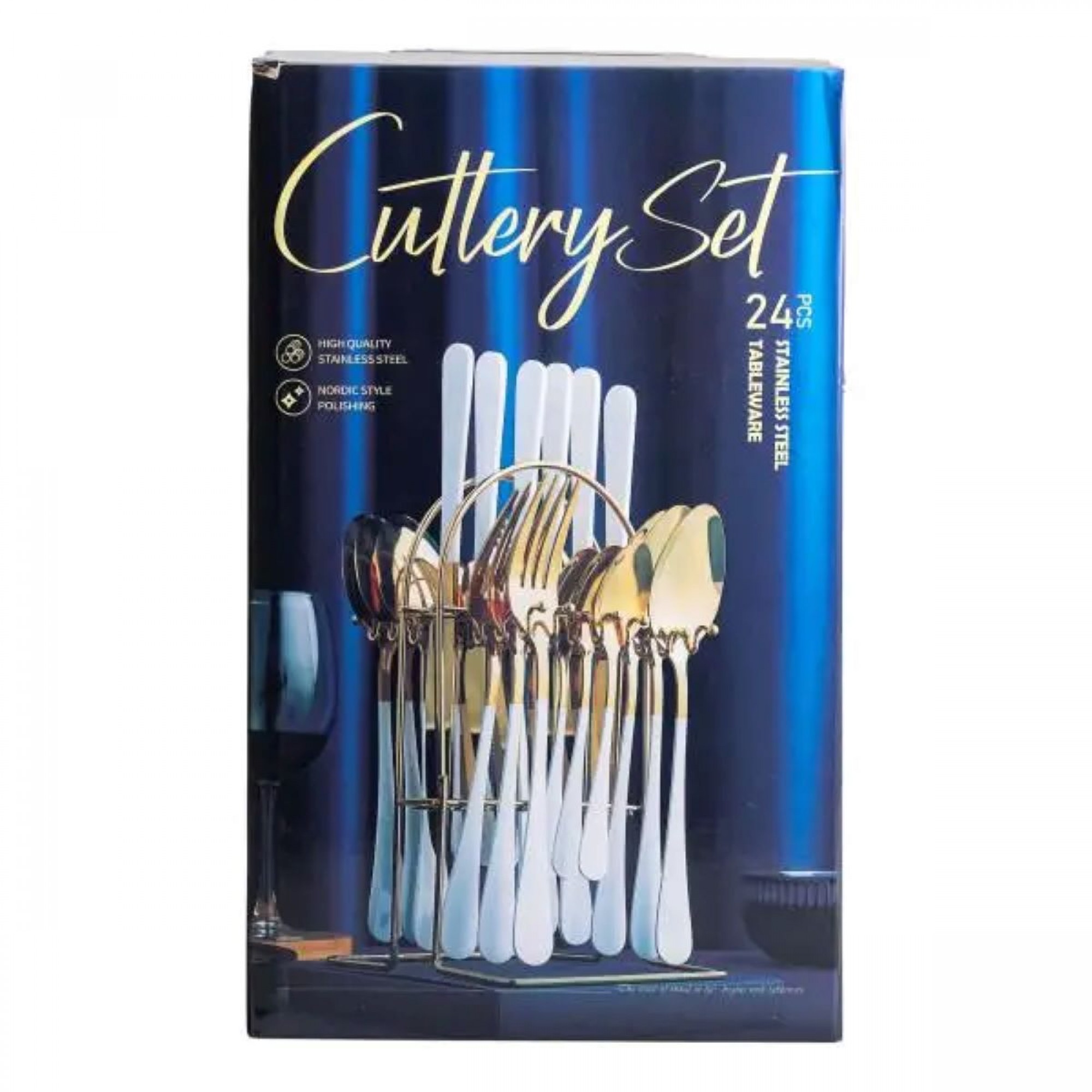 Набір столових приборів на підставці сріблястий - це стильний і практичний аксесуар для будь-якої кухні. У комплект входить 24 предмети, розраховані на 6 персон: 6 столових ложок, 6 чайних ложок, 6 виделок і 6 ножів. Завдяки сучасному дизайну та витонченому поєднанню матеріалів, цей набір стане чудовим доповненням до сервірування столу як у повсякденному житті, так і під час урочистих заходів. Основні характеристики: Кількість предметів у наборі: 24 шт; Кількість персон: 6; Матеріал: нержавіюча сталь, дерево; Упаковка: коробка; Розміри приладів: довжина столового ножа: 22.5 см; довжина столової ложки: 20 см; довжина столової виделки: 20 см; довжина чайної ложки: 14 см. Комплектація набору: столовий ніж: 6 шт; столова ложка: 6 шт; столова виделка: 6 шт; чайна ложка: 6 шт. Особливістю набору є дерев'яні ручки столових приборів, які не тільки додають естетичної привабливості, а й забезпечують зручне використання. Натуральне дерево приємне на дотик, не ковзає в руках і створює відчуття тепла та комфорту. Сріблясті металеві частини виконані з якісного матеріалу, стійкого до корозії, що гарантує довговічність і збереження гарного вигляду навіть у разі щоденного використання. Для зручного зберігання та організації передбачена металева підставка, яка допомагає компактно розташувати прилади та підтримувати порядок на кухні. Вона легка, міцна і легко миється, що робить її практичним доповненням до набору. Завдяки поєднанню стильного дизайну, функціональності та якості матеріалів, цей набір столових приборів стане ідеальним вибором для тих, хто цінує комфорт і естетику у своєму домі.