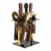 Набір столових приборів на підставці сріблястий - це стильний і практичний аксесуар для будь-якої кухні. У комплект входить 24 предмети, розраховані на 6 персон: 6 столових ложок, 6 чайних ложок, 6 виделок і 6 ножів. Завдяки сучасному дизайну та витонченому поєднанню матеріалів, цей набір стане чудовим доповненням до сервірування столу як у повсякденному житті, так і під час урочистих заходів. Основні характеристики: Кількість предметів у наборі: 24 шт; Кількість персон: 6; Матеріал: нержавіюча сталь, дерево; Упаковка: коробка; Розміри приладів: довжина столового ножа: 22.5 см; довжина столової ложки: 20 см; довжина столової виделки: 20 см; довжина чайної ложки: 14 см. Комплектація набору: столовий ніж: 6 шт; столова ложка: 6 шт; столова виделка: 6 шт; чайна ложка: 6 шт. Особливістю набору є дерев'яні ручки столових приборів, які не тільки додають естетичної привабливості, а й забезпечують зручне використання. Натуральне дерево приємне на дотик, не ковзає в руках і створює відчуття тепла та комфорту. Сріблясті металеві частини виконані з якісного матеріалу, стійкого до корозії, що гарантує довговічність і збереження гарного вигляду навіть у разі щоденного використання. Для зручного зберігання та організації передбачена металева підставка, яка допомагає компактно розташувати прилади та підтримувати порядок на кухні. Вона легка, міцна і легко миється, що робить її практичним доповненням до набору. Завдяки поєднанню стильного дизайну, функціональності та якості матеріалів, цей набір столових приборів стане ідеальним вибором для тих, хто цінує комфорт і естетику у своєму домі.