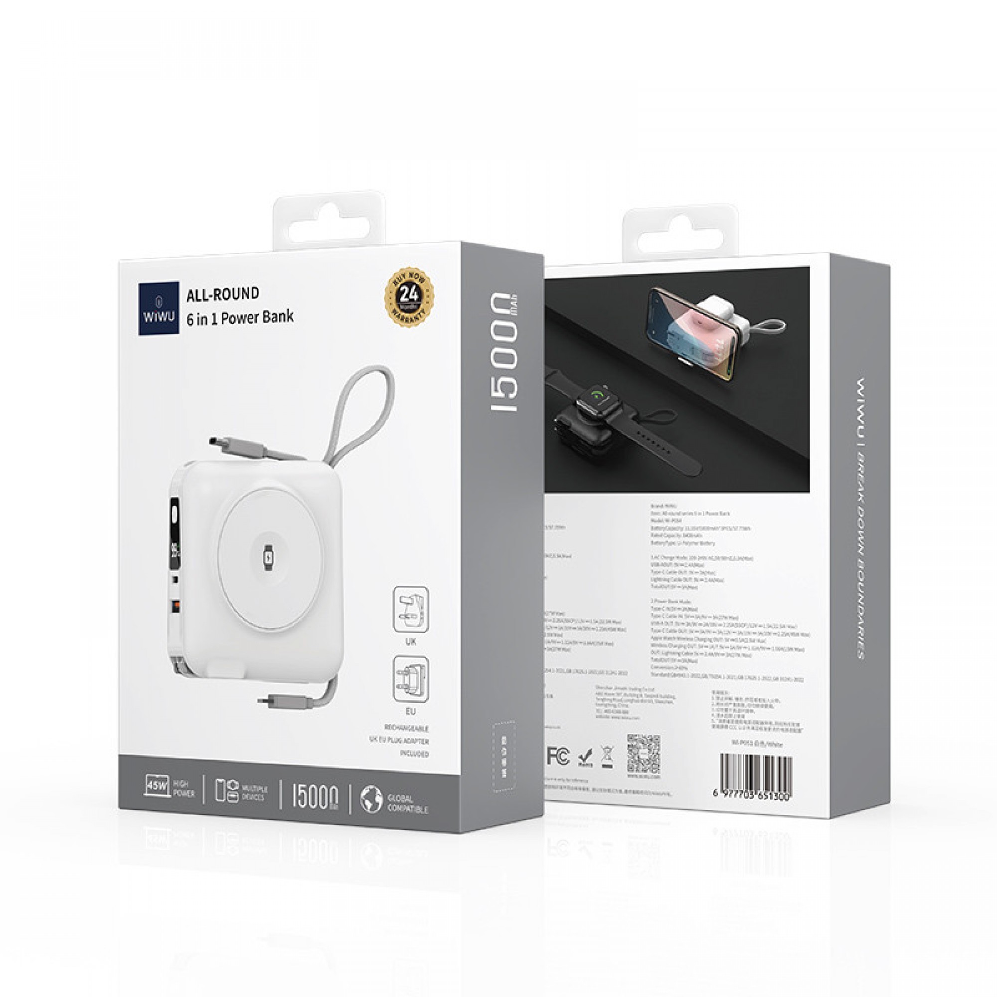 Портативний зарядний пристрій Power Bank WIWU Wi-P051 – це універсальне 6-в-1 рішення з підтримкою PD45W та вбудованою бездротовою зарядкою, створене для сучасних гаджетів.