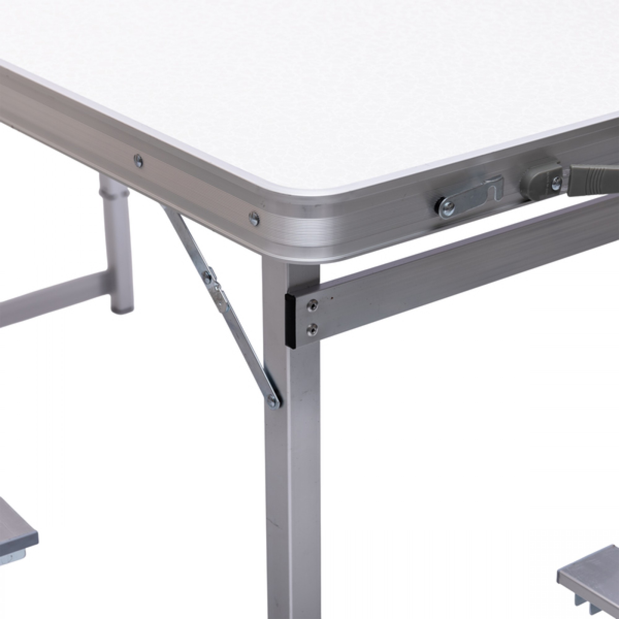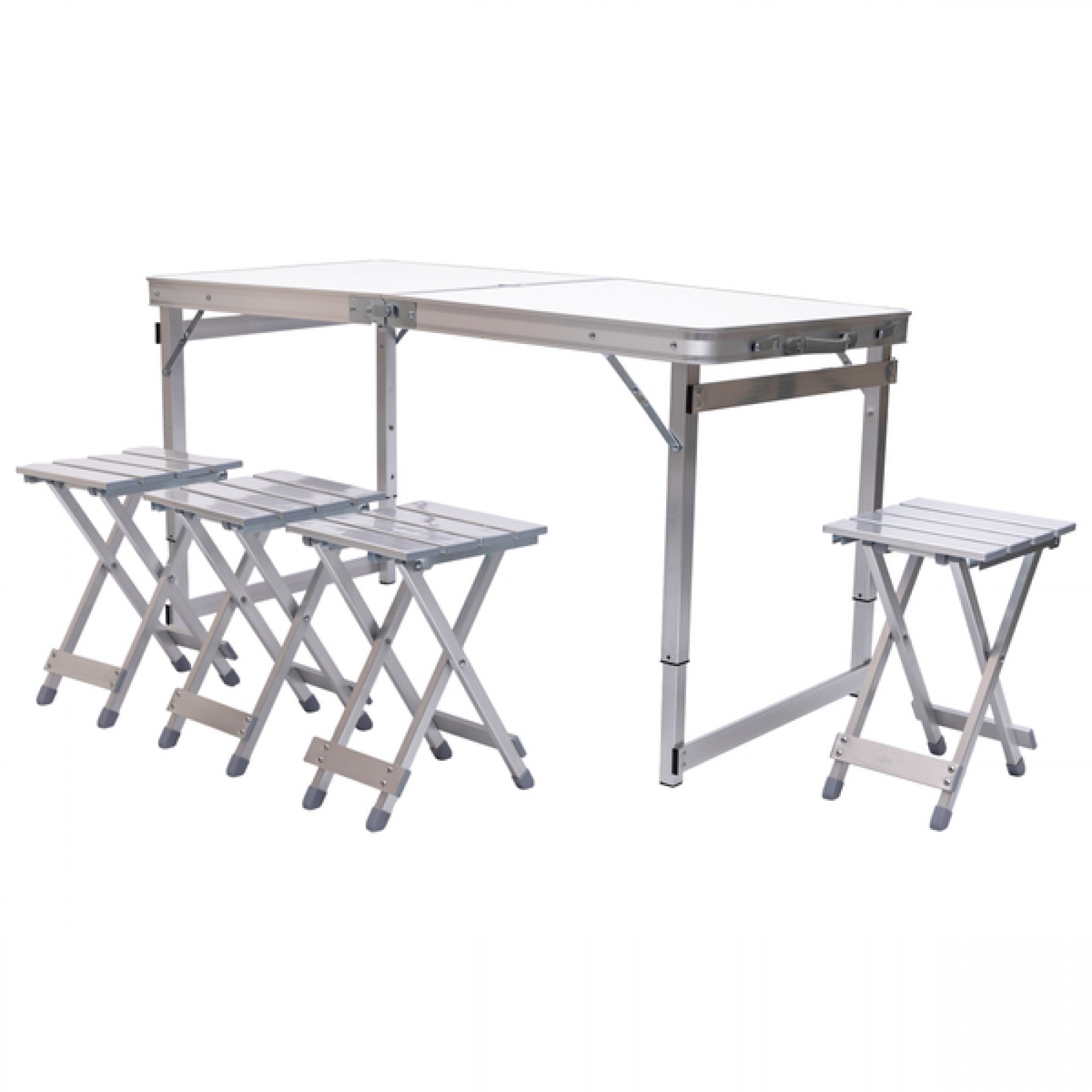 Розкладний комплект меблів з алюмінієвим каркасом підходить для використання на природі, дачі або в кемпінгу. Складна конструкція дозволяє зручно трансформувати всі елементи в одну валізу для транспортування і зберігання. У складеному вигляді стіл і стільці компактно фіксуються, займаючи мінімум місця. Каркас виконаний з легкого і надійного металу, що забезпечує міцність і довговічність при щоденному використанні. Поверхні з алюмінію і МДФ зносостійкі і стійкі до зовнішніх впливів. Висота столу регулюється — 75, 65 або 55 см, що дозволяє налаштувати зручне положення під різні умови. У центрі стільниці передбачено отвір для установки парасольки — це забезпечує захист від сонця або дощу. Характеристики кемпінгового набору для відпочинку: Розміри столу в розкладеному вигляді: 120 x 70 x 75 / 65 / 55 см; Розміри столу в складеному вигляді: 60 x 70 x 10 см; Колір: білий; Матеріал стільниці: МДФ; Матеріал каркаса (опор): алюмінієва трубка; Розмір стільців: 28 x 26 x 39 см; Матеріал каркаса стільців: алюміній; Матеріал сидінь стільців: алюміній. Призначення туристичного набору: для кемпінгу, пікніків, риболовлі; як мобільний варіант для дачі або саду; для сезонних заходів на природі; для зручного транспортування та зберігання. Вся конструкція легко складається і розкладається без додаткових інструментів. Набір стане практичним рішенням для тих, хто шукає компактні, функціональні меблі для відпочинку на відкритому повітрі.