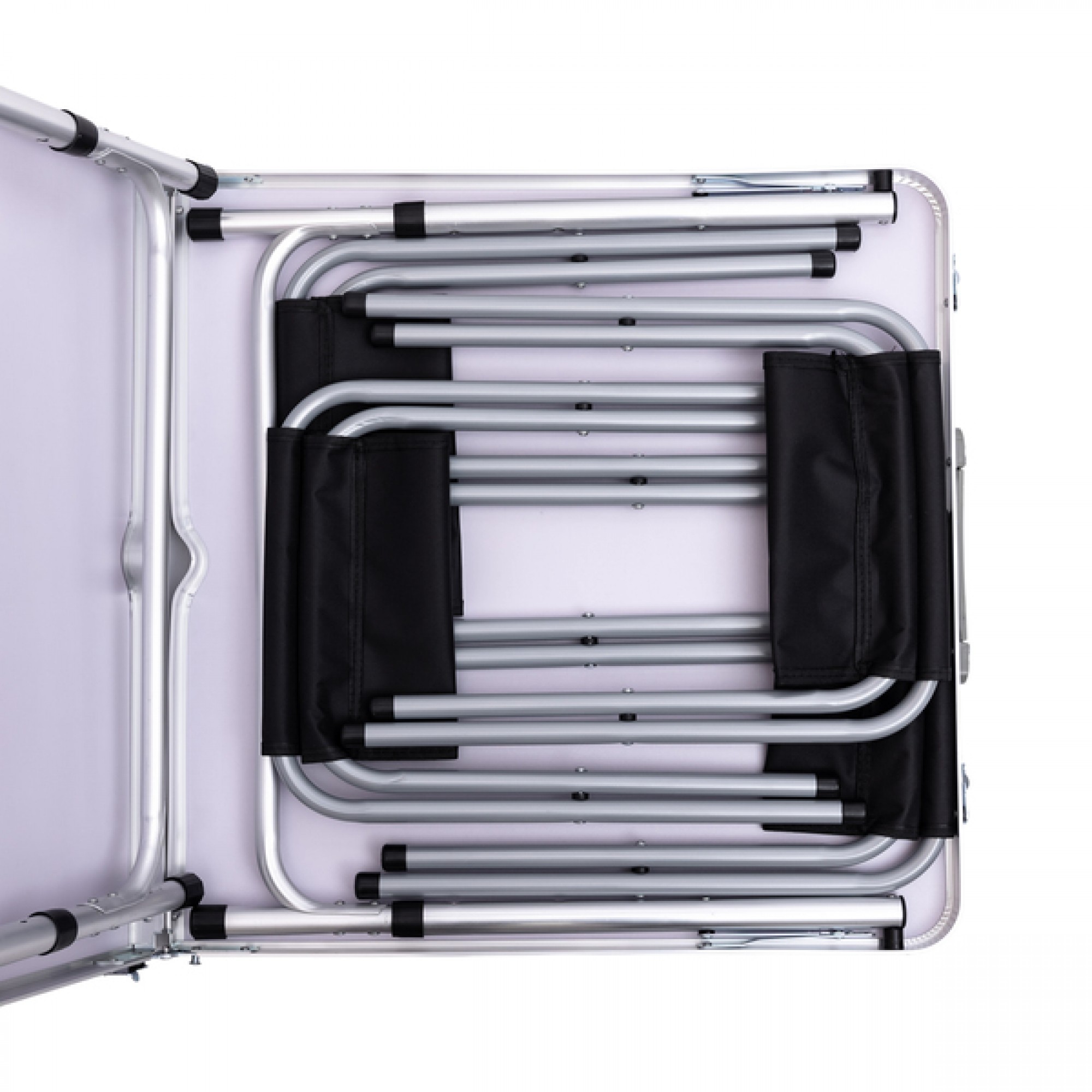 Туристичний складаний набір меблів (стіл + 4 стільці) — відмінне рішення для кемпінгу, дачі, риболовлі, пікніка або будь-якого відпочинку на природі. Він створений для тих, хто цінує комфорт навіть далеко від дому. Компактний, легкий і практичний, цей комплект забезпечить зручність під час прийому їжі, ігор або просто відпочинку на свіжому повітрі. Всі елементи легко складаються і укладаються в валізку, яку зручно брати з собою в поїздку. Основні характеристики набору складних меблів для кемпінгу: Розмір столу в розкладеному вигляді: 120×60×70 см; Розмір столу в складеному вигляді: 60×60×6,5 см; Розмір стільців: 32×27×35 см; Матеріал каркаса (опор) столу: алюміній; Матеріал стільниці столу: МДФ; Матеріал каркаса стільців: залізна труба (∅18, товщина-0,55 мм); Матеріал сидіння стільців: 600D Oxford. Переваги набору меблів для пікніка: Швидке складання та розбирання; Компактність при зберіганні та транспортуванні; Легка вага завдяки алюмінієвому каркасу; Отвір для парасольки — захист від сонця в спекотну погоду; Стійкість та надійність конструкції; Зручність і комфорт в будь-яких умовах. Завдяки поєднанню легкості, міцності і компактності, цей туристичний набір меблів стане надійним помічником під час будь-якого виїзду на природу. Він забезпечує комфортну зону для відпочинку і прийому їжі, легко збирається і зручно транспортується. Незалежно від того, чи вирушаєте ви на пікнік, риболовлю або в подорож — з цим набором у вас завжди буде з собою зручне і функціональне рішення для відпочинку.