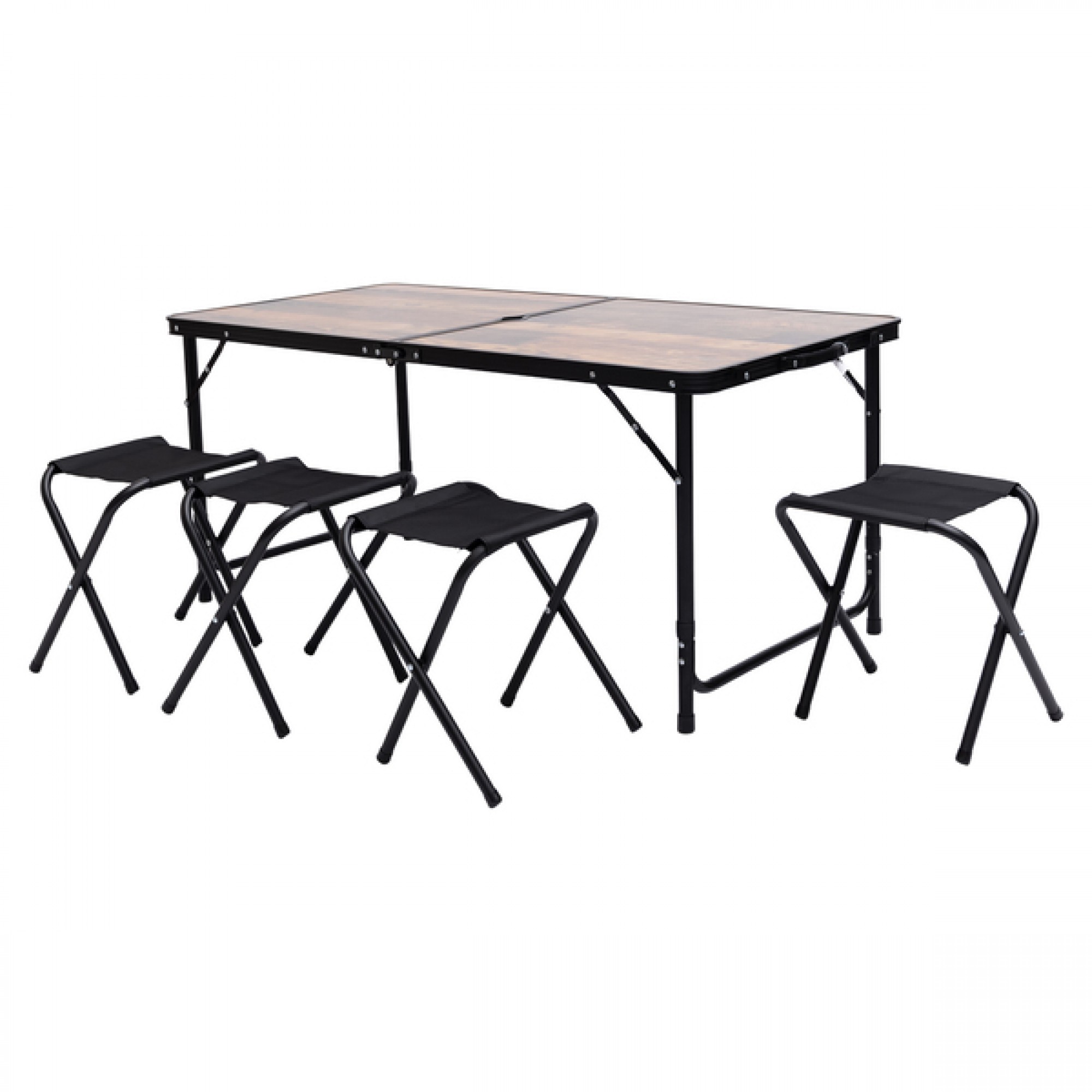 Туристичний складаний набір меблів (стіл + 4 стільці) — відмінне рішення для кемпінгу, дачі, риболовлі, пікніка або будь-якого відпочинку на природі. Він створений для тих, хто цінує комфорт навіть далеко від дому. Компактний, легкий і практичний, цей комплект забезпечить зручність під час прийому їжі, ігор або просто відпочинку на свіжому повітрі. Всі елементи легко складаються і укладаються в валізку, яку зручно брати з собою в поїздку. Основні характеристики набору складних меблів для кемпінгу: Розмір столу в розкладеному вигляді: 120×60×70 см; Розмір столу в складеному вигляді: 60×60×6,5 см; Розмір стільців: 32×27×35 см; Матеріал каркаса (опор) столу: алюміній; Матеріал стільниці столу: МДФ; Матеріал каркаса стільців: залізна труба (∅18, товщина-0,55 мм); Матеріал сидіння стільців: 600D Oxford. Переваги набору меблів для пікніка: Швидке складання та розбирання; Компактність при зберіганні та транспортуванні; Легка вага завдяки алюмінієвому каркасу; Отвір для парасольки — захист від сонця в спекотну погоду; Стійкість та надійність конструкції; Зручність і комфорт в будь-яких умовах. Завдяки поєднанню легкості, міцності і компактності, цей туристичний набір меблів стане надійним помічником під час будь-якого виїзду на природу. Він забезпечує комфортну зону для відпочинку і прийому їжі, легко збирається і зручно транспортується. Незалежно від того, чи вирушаєте ви на пікнік, риболовлю або в подорож — з цим набором у вас завжди буде з собою зручне і функціональне рішення для відпочинку.