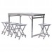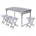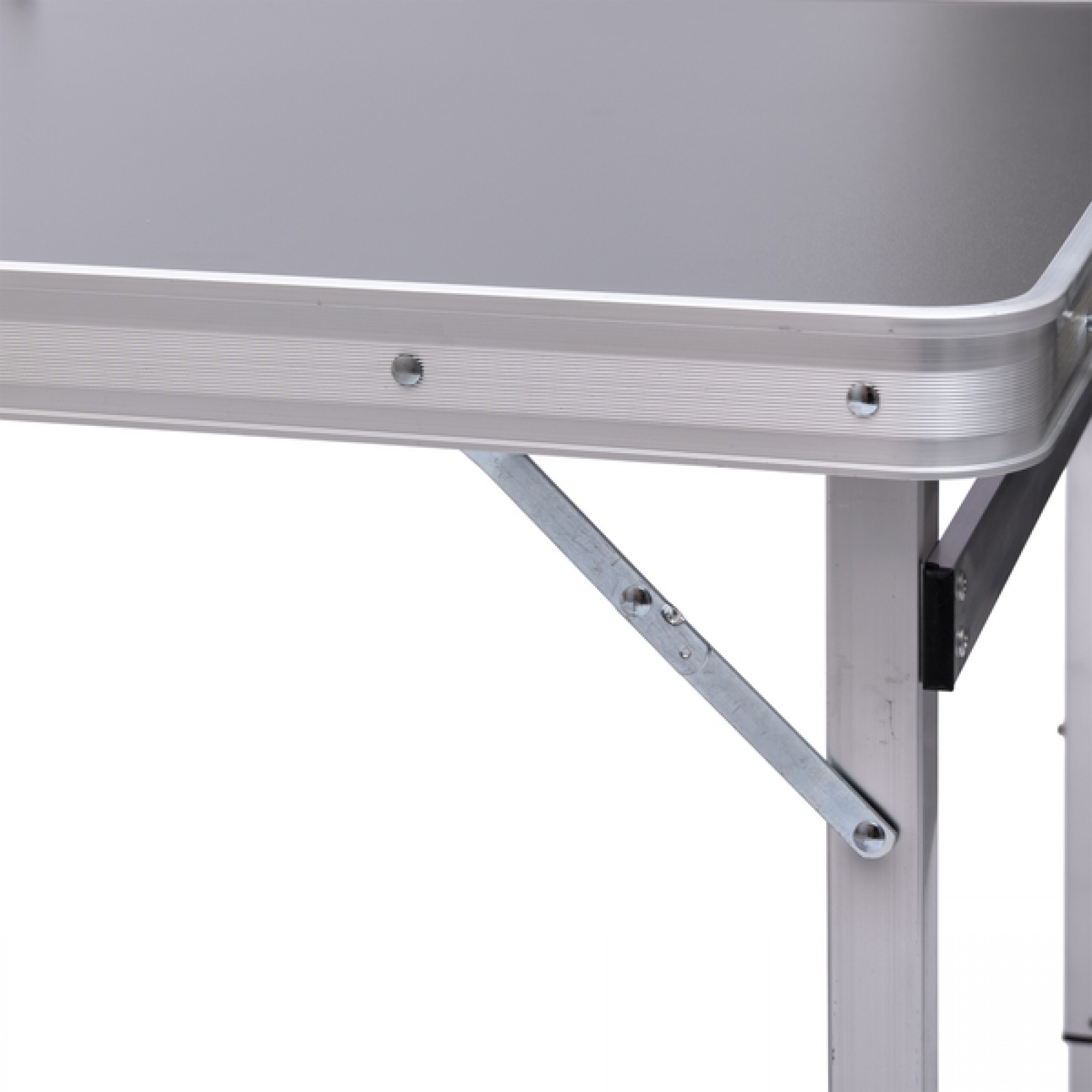 Розкладний комплект меблів з алюмінієвим каркасом підходить для використання на природі, дачі або в кемпінгу. Складна конструкція дозволяє зручно трансформувати всі елементи в одну валізу для транспортування і зберігання. У складеному вигляді стіл і стільці компактно фіксуються, займаючи мінімум місця. Каркас виконаний з легкого і надійного металу, що забезпечує міцність і довговічність при щоденному використанні. Поверхні з алюмінію і МДФ зносостійкі і стійкі до зовнішніх впливів. Висота столу регулюється — 75, 65 або 55 см, що дозволяє налаштувати зручне положення під різні умови. У центрі стільниці передбачено отвір для установки парасольки — це забезпечує захист від сонця або дощу. Характеристики кемпінгового набору для відпочинку: Розміри столу в розкладеному вигляді: 120 x 70 x 75 / 65 / 55 см; Розміри столу в складеному вигляді: 60 x 70 x 10 см; Колір: білий; Матеріал стільниці: МДФ; Матеріал каркаса (опор): алюмінієва трубка; Розмір стільців: 28 x 26 x 39 см; Матеріал каркаса стільців: алюміній; Матеріал сидінь стільців: алюміній. Призначення туристичного набору: для кемпінгу, пікніків, риболовлі; як мобільний варіант для дачі або саду; для сезонних заходів на природі; для зручного транспортування та зберігання. Вся конструкція легко складається і розкладається без додаткових інструментів. Набір стане практичним рішенням для тих, хто шукає компактні, функціональні меблі для відпочинку на відкритому повітрі.