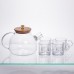 Чайный набор из толстого стекла на 5 предметов предназначен для сервировки напитков на четыре персоны. В комплект входит прозрачный чайник и четыре чашки, выполненные в едином стиле. Благодаря термостойкому материалу набор подходит для горячих напитков, сохраняя при этом эстетичный вид и удобство в использовании. Чайник имеет диаметр 13 см и высоту 16 см, оснащен плотной бамбуковой крышкой с декоративной ручкой. Его объем — 1 литр, что позволяет приготовить напиток на несколько порций. Чашки диаметром 5,5 см и высотой 6 см имеют объем 120 мл — удобный для подачи чая, кофе или травяных настоев. Прозрачное стекло позволяет контролировать уровень напитка и создает легкий, современный вид. Общий вес набора — 1 кг, что обеспечивает стабильность и комфорт в использовании. Набор подходит для домашнего использования, а также для небольших офисных или гостевых зон. Характеристики: Количество предметов: 5 Количество персон: 4 Материал: термостойкое стекло Крышка чайника: бамбук Диаметр чайника: 13 см Высота чайника: 16 см Объем чайника: 1 л Диаметр чашек: 5,5 см Высота чашек: 6 см Объем чашки: 120 мл Общий вес: 1 кг
