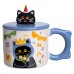 Чашка фарфоровая с крышкой Kitten's Birthday 400 (мл) подарочная кружка прикольная чашка для детей на подарок Синий FM-24A