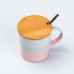 Чашка с бамбуковой крышкой и ложкой керамическая 350 мл. Эта красивая керамическая чашка с бамбуковой крышкой и ложкой однозначно станет прекрасным подарком! Она неприхотлива в эксплуатации, отлично сохраняет тепло и подойдет для горячих и холодных напитков. Основные характеристики чашки Высота чашки 9.0 см; Диаметр чашки 8.5 см; Объем чашки 350 мл. Основные преимущества чашки Сохранение тепла: керамика прекрасно сохраняет тепло напитка, позволяя вам наслаждаться чаем или кофе дольше. Экологичность: керамика – это натуральный и безопасный материал, не выделяющий вредных веществ. Универсальность: керамические чашки подходят для горячих и холодных напитков. Практичность: керамические чашки легко моются и не впитывают запахи. Долговечность: керамические чашки при правильном уходе прослужат вам долгие годы.