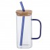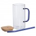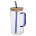 Чашка стеклянная 400 мл с бамбуковой крышкой и синей трубочкой HP-19-146BL
