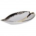 Фарфоровое сервировочное блюдо в форме листа — это изящное решение для красивой подачи закусок, десертов и основных блюд. Белоснежная поверхность с волнистым краем и золотистой окантовкой придает сервировке утончённость и гармонично вписывается в любой интерьер кухни или праздничного стола. Основные характеристики блюда для сервировки стола: Материал: фарфор; Размер: 45×24×5.5 см. Особенности фарфорового блюда: Удобное для подачи фруктов, овощей, салатов или сладостей. Форма листа делает сервировку оригинальной и декоративной. Фарфор устойчив к ежедневному использованию, легко моется и сохраняет безупречный вид. Подходит как для повседневного применения, так и для праздничных застолий. Такое сервировочное блюдо станет не только практичным помощником на кухне, но и стильным украшением вашего стола. Он подчеркнет вкус приготовленных угощений и добавит изюминку в атмосферу любого приема пищи — от семейного ужина до праздничного банкета.