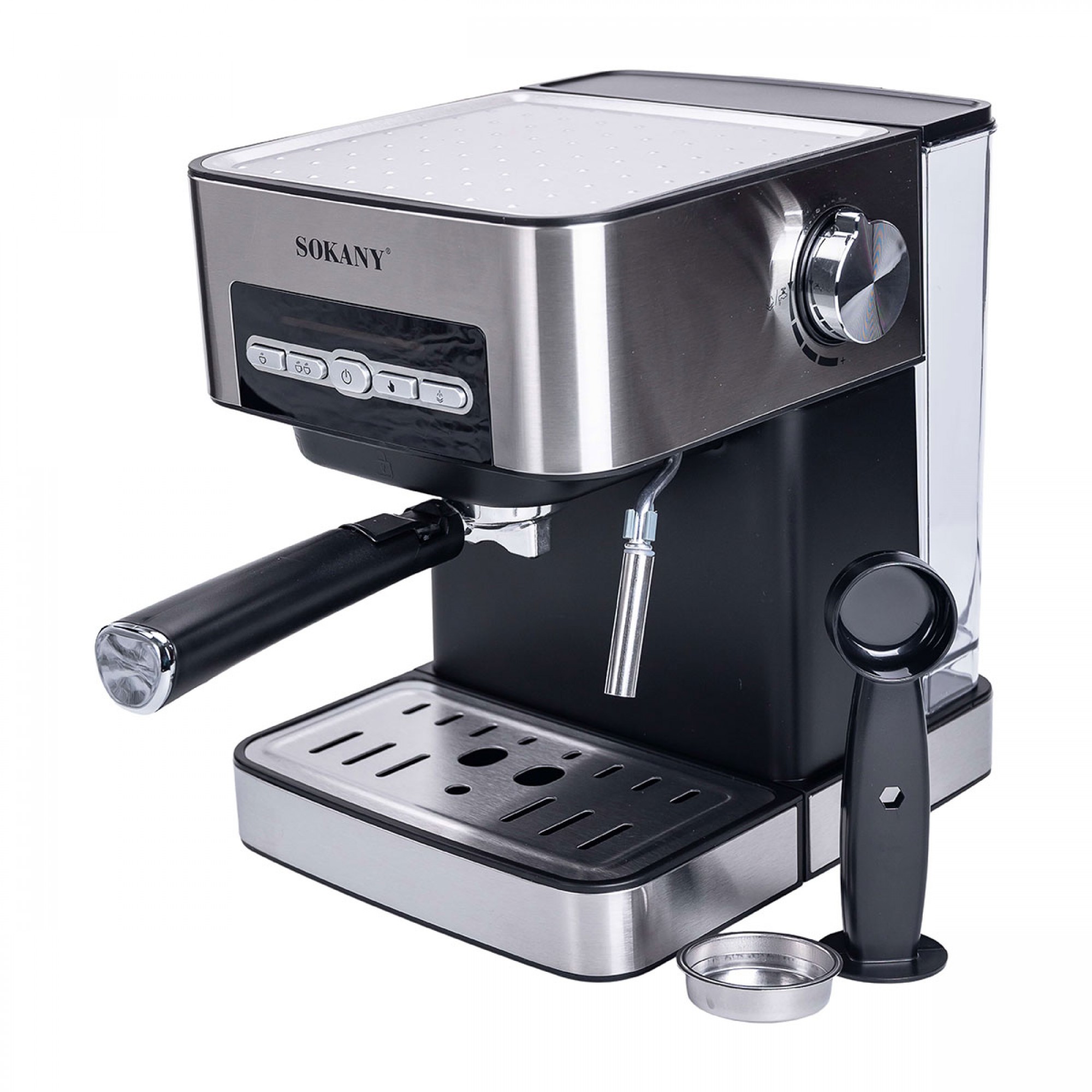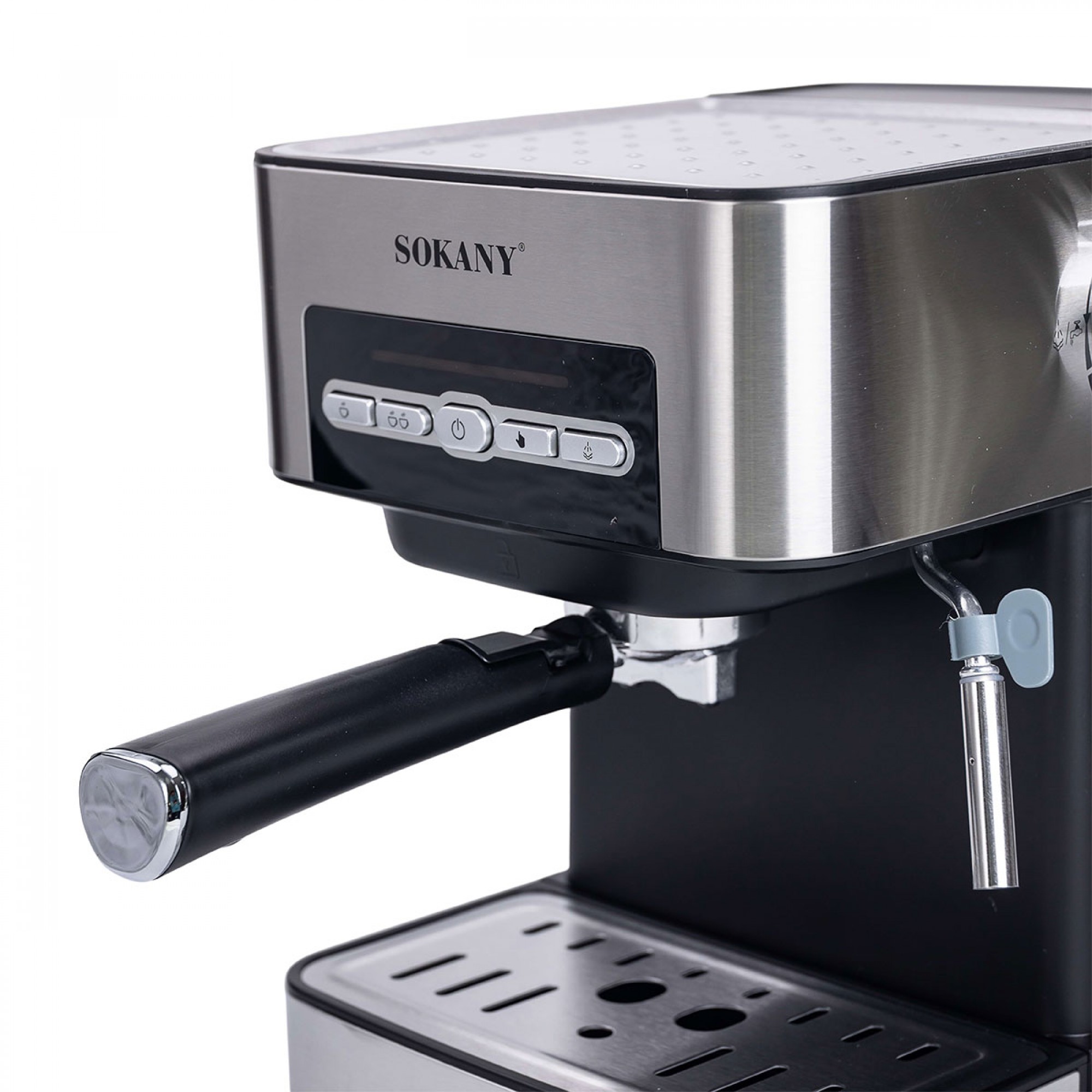 Электрическая кофемашина Sokany - это современная полуавтоматическая кофеварка, которая создает идеальные напитки благодаря сочетанию инновационных функций и профессионального подхода к приготовлению кофе. Постоянный фильтр с ручкой позволяет удобно работать с молотым кофе, а съемный поддон для сбора капель легко очищается, обеспечивая гигиеничность. Благодаря функции пара и горячей воды, вы можете не только приготовить кофе, но и вспенить молоко для идеального капучино или латте. Основные характеристики кофемашины Sokany размер 26×21×28 см; мощность 850 Вт; диапазон давления 0-15 бар; материал: нержавеющая сталь + ABS; объем резервуара для воды 1.6 литра; приготовление на 1 или 2 чашки кофе. Модель оснащена профессиональной насадкой для вспенивания, которая смешивает пар и молоко для создания густой сливочной пенки. Большой резервуар для воды объемом 1.6 л позволяет приготовить несколько порций напитков без частого пополнения. Максимальное давление в 15 бар обеспечивает идеальное прохождение воды через молотый кофе, раскрывая его аромат и создавая густую пенку. Мощность 850 Вт гарантирует быстрый нагрев и стабильную работу. Кофеварка Sokany также имеет функцию очистки от накипи, что продлевает срок службы кофемашины и сохраняет качество вкуса напитков. Благодаря компактным размерам, кофеварка удобно размещается на кухне, а ее стильный дизайн придает современный вид вашему пространству.