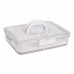 Контейнер изготовлен из прозрачного пищевого пластика, что позволяет легко контролировать содержимое без открывания. Герметичная крышка плотно фиксируется с помощью четырех боковых замков и оснащена бежевыми ручками для удобного открывания и переноски. Внутри предусмотрена отдельная подставка на дне, которая способствует циркуляции воздуха и отводу влаги - это продлевает свежесть хранимых продуктов. Основные характеристики: Размер: 31х24х7 см; Внутренний размер: 28.5х21.5х5 см; Объем: 2.5 л; Материал: пластик. Этот многофункциональный контейнер подходит для хранения овощей, фруктов, зелени, остатков блюд, а также сыпучих продуктов. Благодаря герметичности контейнер сохраняет аромат и структуру пищи, предотвращая проникновение посторонних запахов. Его удобно использовать в холодильнике, шкафу или брать с собой в дорогу. Материал не впитывает запахов, легко моется вручную или в посудомоечной машине. Продуманная форма позволяет компактно размещать несколько контейнеров друг на друге, оптимизируя пространство хранения.