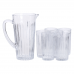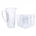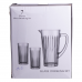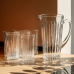 Набор для напитков состоит из одного кувшина и шести стаканов, изготовленных из прозрачного стекла. Все элементы имеют рельефную (ребристую) внешнюю поверхность, что обеспечивает надежный захват и снижает риск случайного выскальзывания из рук. Стеклянный материал устойчив к изменению температур и не впитывает запахов, что делает набор пригодным для ежедневного использования с холодными или комнатной температуры напитками. Характеристики набора стаканов с кувшином высота кувшина: 23 см; диаметр кувшина: верх - 12 см, низ - 8.5 см; высота стаканов: 13.5 см; диаметр стаканов: верх - 7 см, низ - 6 см; объем кувшина: 1.2 л; объем стаканов: 320 мл; материал: стекло; количество предметов: 7 (6 стаканов + 1 кувшин). Кувшин имеет эргономичную ручку и носик для комфортного наливания жидкости, объем позволяет удобно сервировать напитки для семьи или гостей. Стаканы имеют классическую цилиндрическую форму, достаточную вместимость для порционного использования, а также толстые стенки для повышенной прочности. Все части набора легко очищаются вручную или в посудомоечной машине. Этот комплект подходит для подачи воды, компота, лимонада, сока и других безалкогольных напитков как в домашних условиях, так и в заведениях питания. Благодаря простому дизайну из прозрачного стекла набор гармонично вписывается в любой интерьер кухни или сервировки стола.