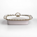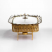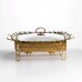 Мармитница фарфоровая Tiffany объемом 1.5 л предназначена для поддержания температуры готовых блюд во время подачи. Благодаря конструкции с металлической подставкой и возможностью использования свечей-таблеток, он позволяет сохранять тепло без подключения к электросети. Такой формат удобен для сервировки стола дома, на праздничных мероприятиях или в заведениях общественного питания. Основная емкость изготовлена из фарфора, что обеспечивает устойчивость к температурным изменениям и простоту в уходе. Стеклянная крышка позволяет контролировать содержимое без необходимости открывания, что помогает минимизировать потерю тепла. Металлическая подставка выполняет функцию держателя и обеспечивает место для размещения источника подогрева, равномерно поддерживающего температуру блюда. Конструкция мармита предусматривает компактные габариты, что делает его удобным для размещения даже на небольших столах. Сочетание материалов – фарфор, стекла и металла – обеспечивает практичность в использовании и совместимость с различными форматами сервировки. Подходит для подачи первых и вторых блюд, гарниров или соусов. Характеристики: Тип: мармит Коллекция: Tiffany Материал емкости: фарфор Крышка: стеклянная Подставка: металлическая Источник подогрева: свечи-таблетки Объем: 1.5 л Высота: 7 см Ширина: 26 см Длина: 34 см Вес: 2.5 кг