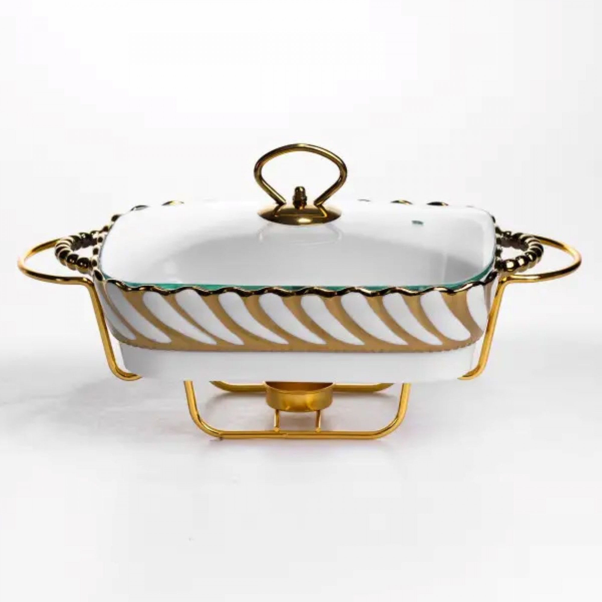 Мармитница фарфоровая Tiffany 1 л на металлической подставке с подогревом 28х23х7 см SG-428-11