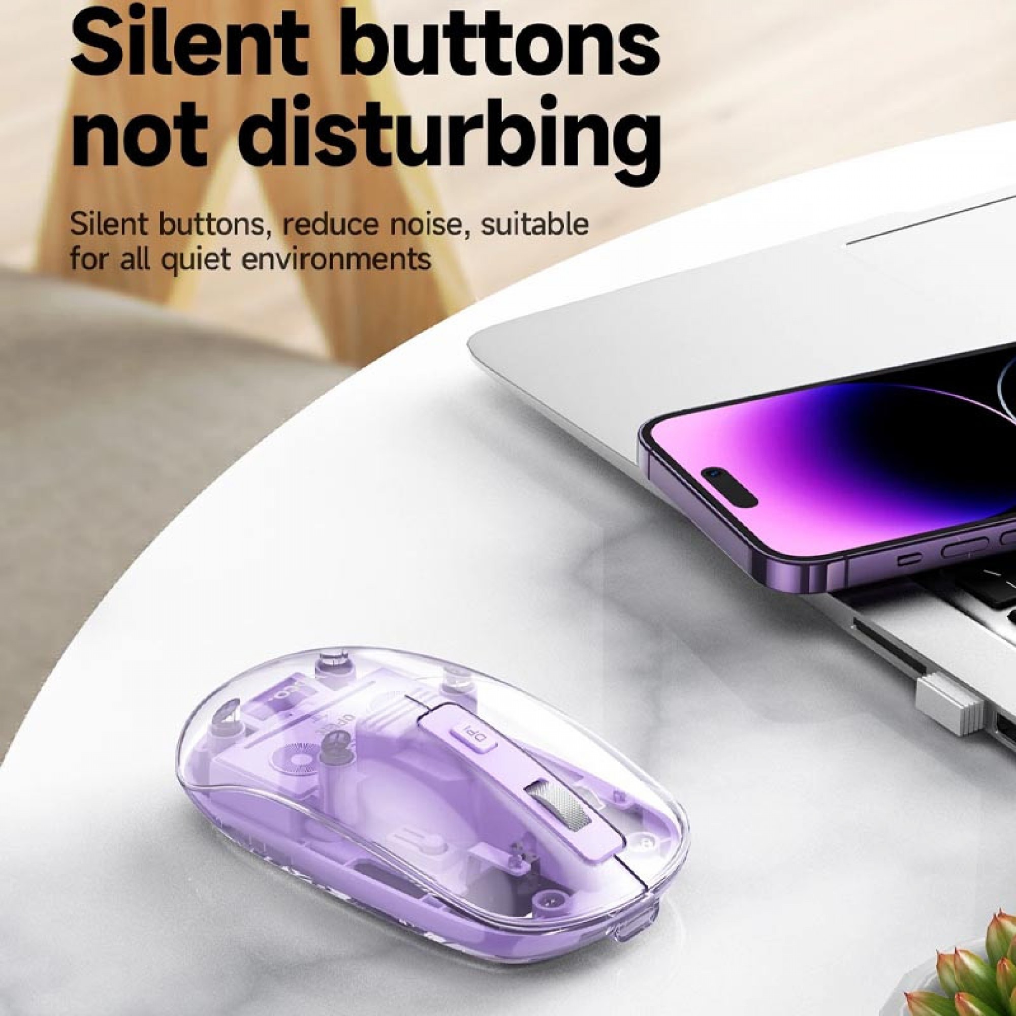 Компактная беспроводная мышка, обладает стильным прозрачным дизайном, через который виден весь внутренний мир гаджета