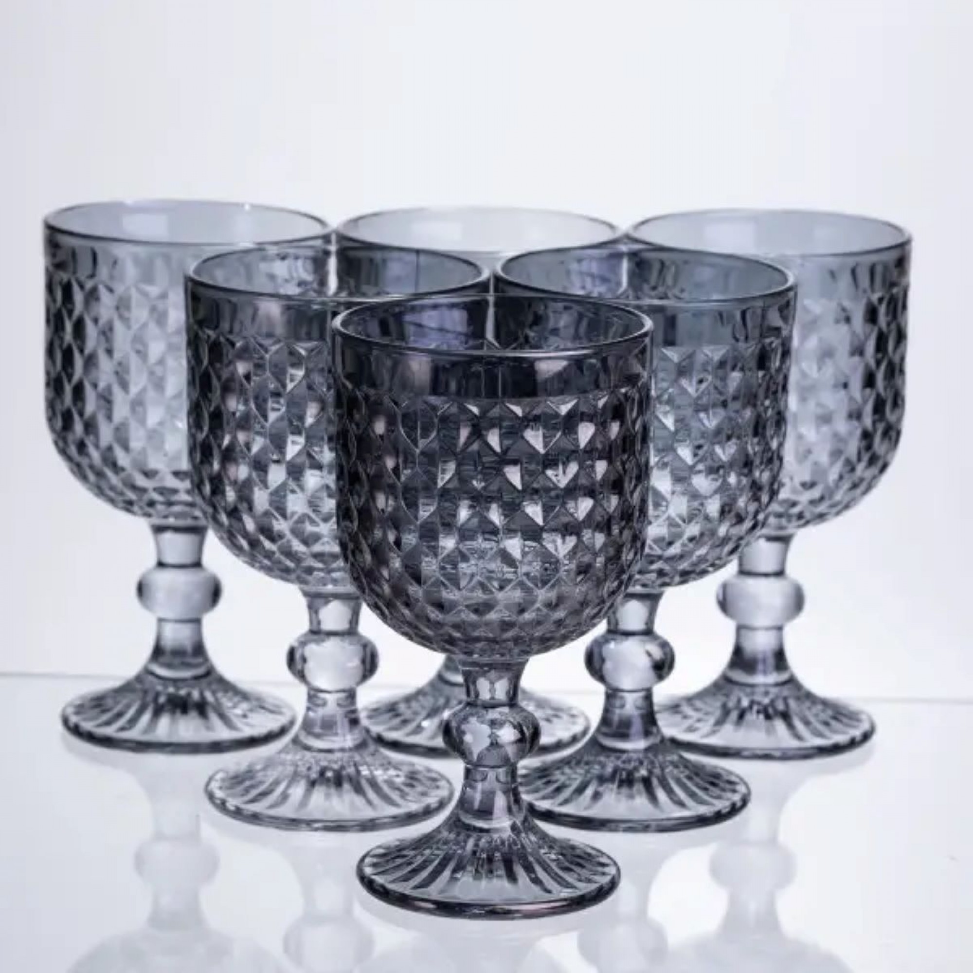 Бокалы с рельефной поверхностью изготовлены из качественного бессвинцового стекла, которое не впитывает запахи и не влияет на вкус напитков. Высота каждого бокала составляет 16 см, диаметр — 8,5 см, а объем 300 мл оптимален для подачи вина и других напитков, требующих сохранения естественного аромата. Такая форма удобна для держания и подчеркивает подачу во время праздничных или повседневных трапез. Материал бокалов отличается повышенной прозрачностью и прочностью, сохраняя свой первоначальный вид даже при регулярном использовании. Стекло не впитывает посторонних запахов, что позволяет полностью раскрыть вкусовые свойства напитка. Благодаря рельефной поверхности бокалы имеют выразительный вид и приятно лежат в руке. Изделия пригодны для мытья в посудомоечной машине. При ручном уходе рекомендуется использовать неабразивные моющие средства и мягкие губки, чтобы сохранить блеск и прозрачность стекла в течение длительного времени. В наборе предусмотрено несколько одинаковых бокалов, что удобно для сервировки стола. Характеристики: Материал: бессвинцовое стекло; Высота: 16 см; Диаметр: 8,5 см; Объем: 300 мл; Назначение: для вина; Пригодность к мытью в посудомоечной машине