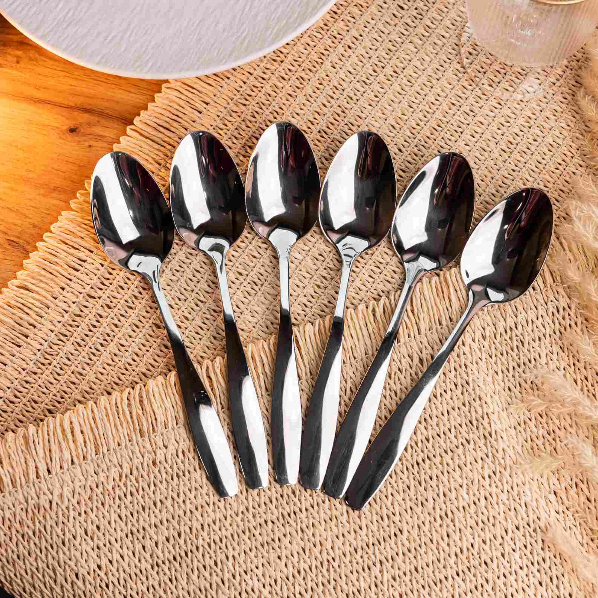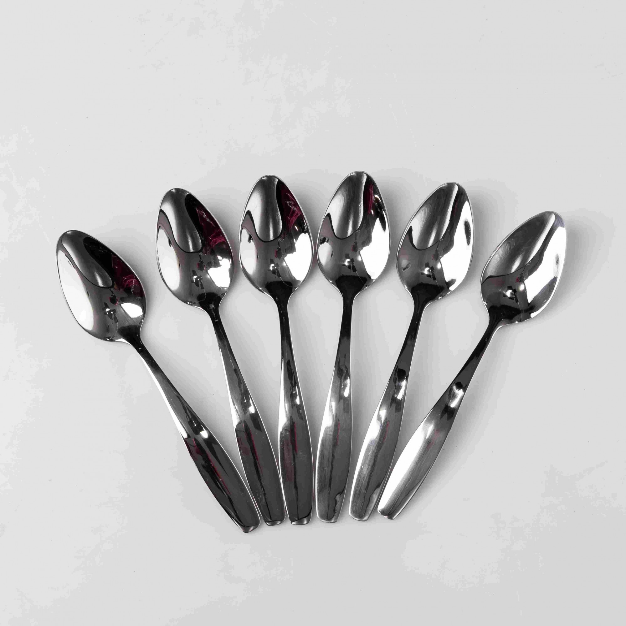 Лаконичные десертные приборы с зеркальной полировкой. Дизайн выполнен в стиле минимализма: гладкие поверхности, отсутствие гравировки и декоративных элементов позволяют ложкам гармонично смотреться с любой современной посудой. Особенности: Материал: Нержавеющая сталь. Сплав устойчив к коррозии, не влияет на вкус и аромат напитков, сохраняет блеск даже при частом использовании. Зеркальный финиш: Высококачественная полировка всей поверхности придает изделиям аккуратный и эстетичный вид. Минималистичная эргономика: Тонкая рукоят, плавно расширяющаяся к основанию, обеспечивает удобство использования. Гладкие края и отсутствие лишних деталей упрощают уход. Размер: Длина 14,5 см – классический формат для чайных пар, кофейных чашек и подачи порционных десертов. Универсальность: Приборы подходят как для домашнего использования, так и для оснащения кафе и ресторанов. Характеристики: Материал: нержавеющая сталь Длина: 14,5 см Вес набора: 200 г